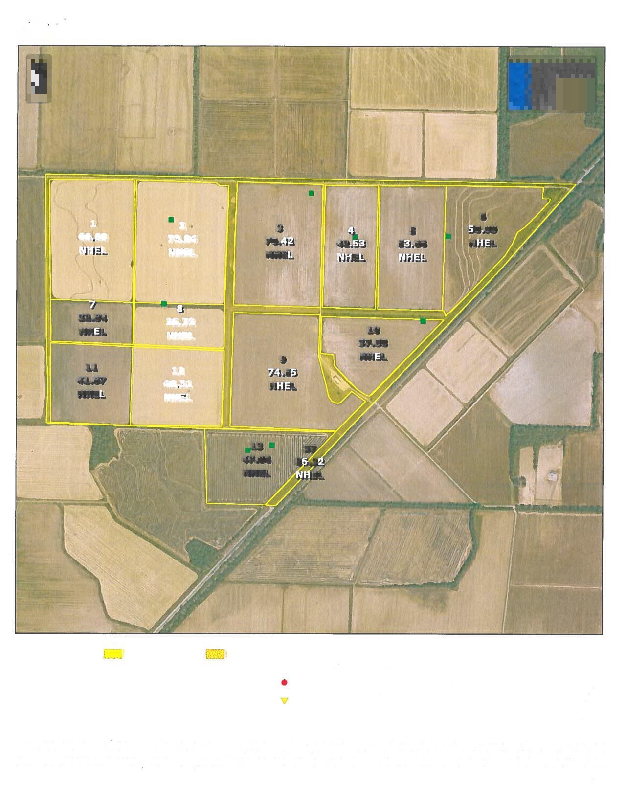 The Diantha West Farm consists of approximately 712.0± acres located in Jefferson County, Arkansas just northeast of the town of Wabbaseka. The Farm Service Agency office reports a total of 653.27± cropland acres that are all irrigated by six wells and four re-lifts. There are two tail water recovery pits that run through the center portion of the farm that total just over a mile in length. The farm is poised to continue to be a strong rice production farm with it being located within a strong aquifer area, and due to the surface water recapture / circulation system that was developed on the farm. Additionally, 535.68± tillable acres have been leveled to a zero grade which only strengthens the farm’s ability to grow rice on a consistent yearly basis. The most northeastern field, 50.99± tillable acres, has had dirt pans on it so that the field row waters, and the northwestern field that is 66.6± tillable acres could easily be leveled to a zero grade. Historically, the producer has planted 70-75%