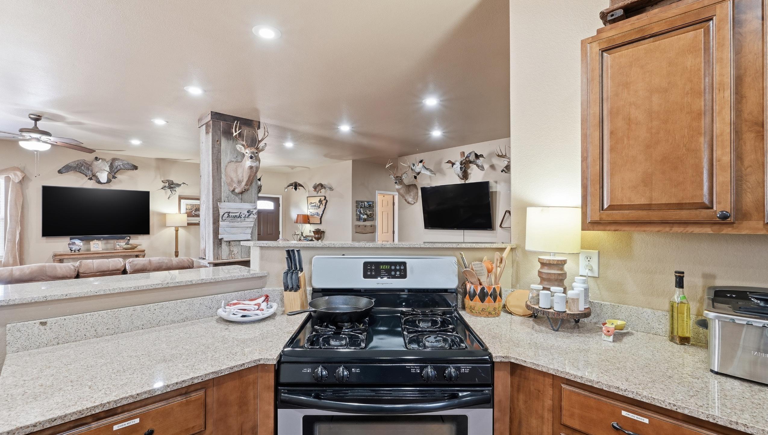 • Full kitchen with granite countertops