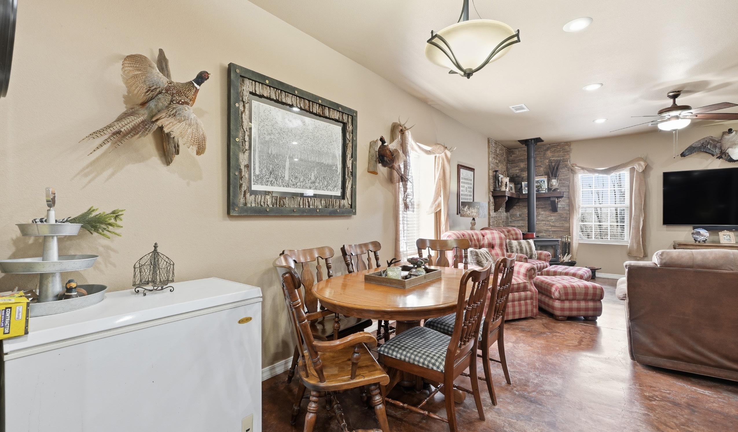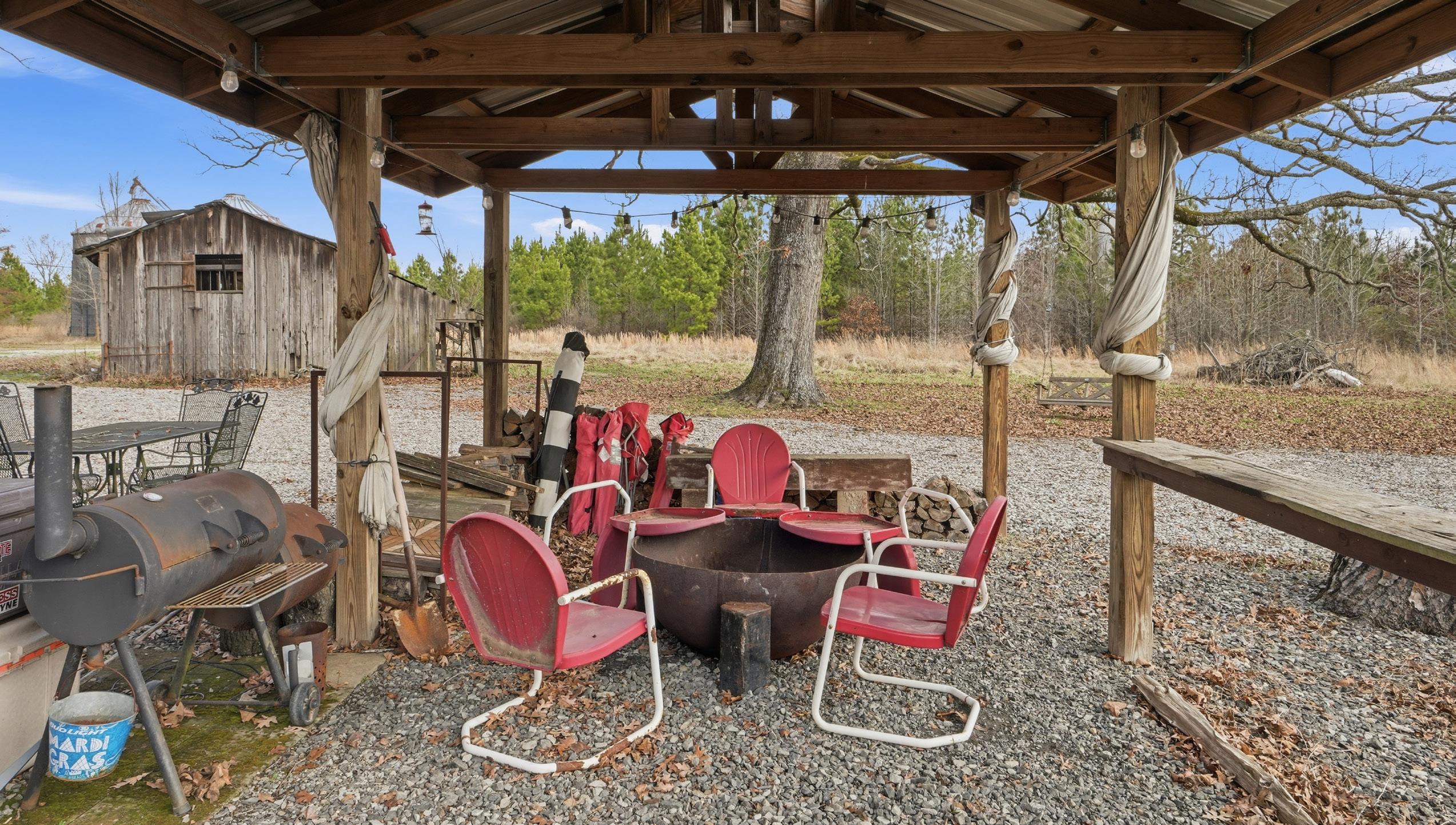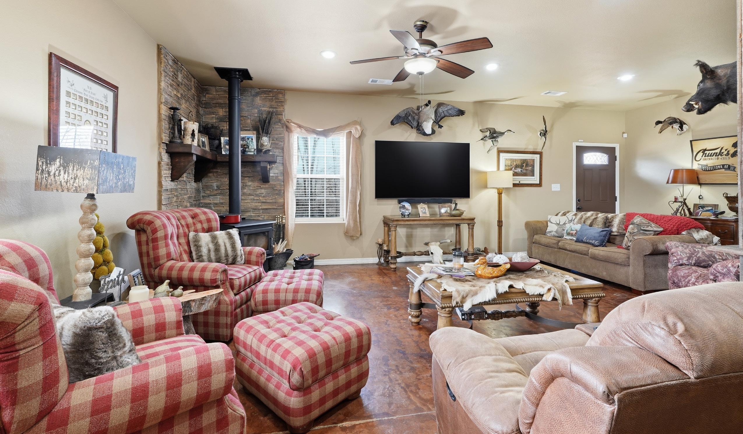 The Georgetown Lodge offers the opportunity to acquire a turnkey camp with the comforts of home, all in an excellent location for recreation. The lodge features 2,164± sq ft with three (3) bedrooms and one and a half (1.5) bathrooms. The open concept full kitchen and living room features a pool table, full bar and wood burning fireplace, making this a great place to relax after a successful hunt. Outside, the screened in 500 ± sq ft back porch or the covered firepit offer excellent areas to entertain guests year-round. The lodge also includes a game cleaning station that is connected to an enclosed storage area/ mudroom. A shipping container with electricity is located on the property providing