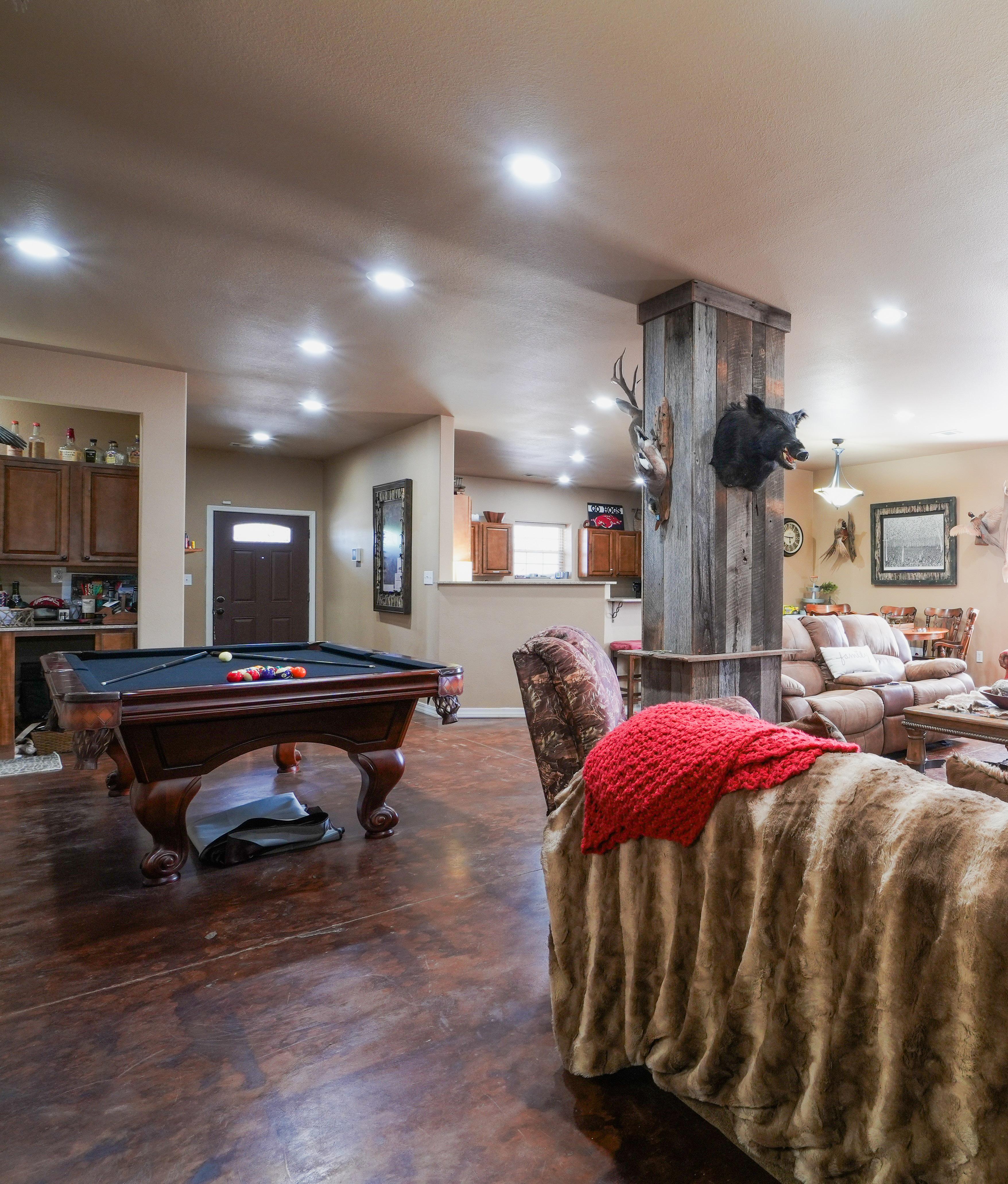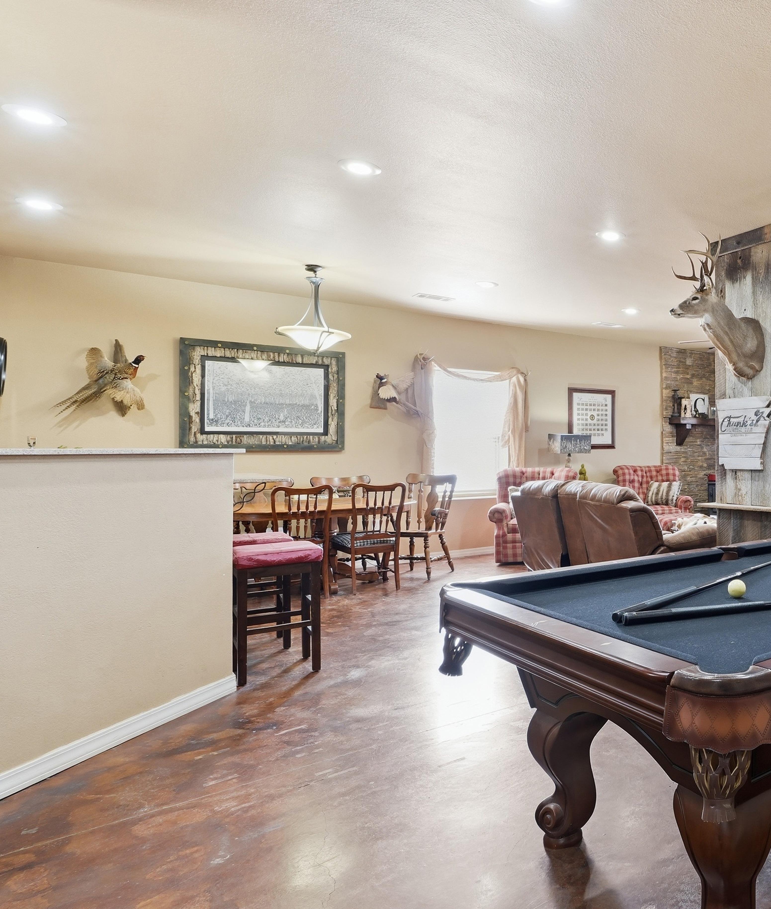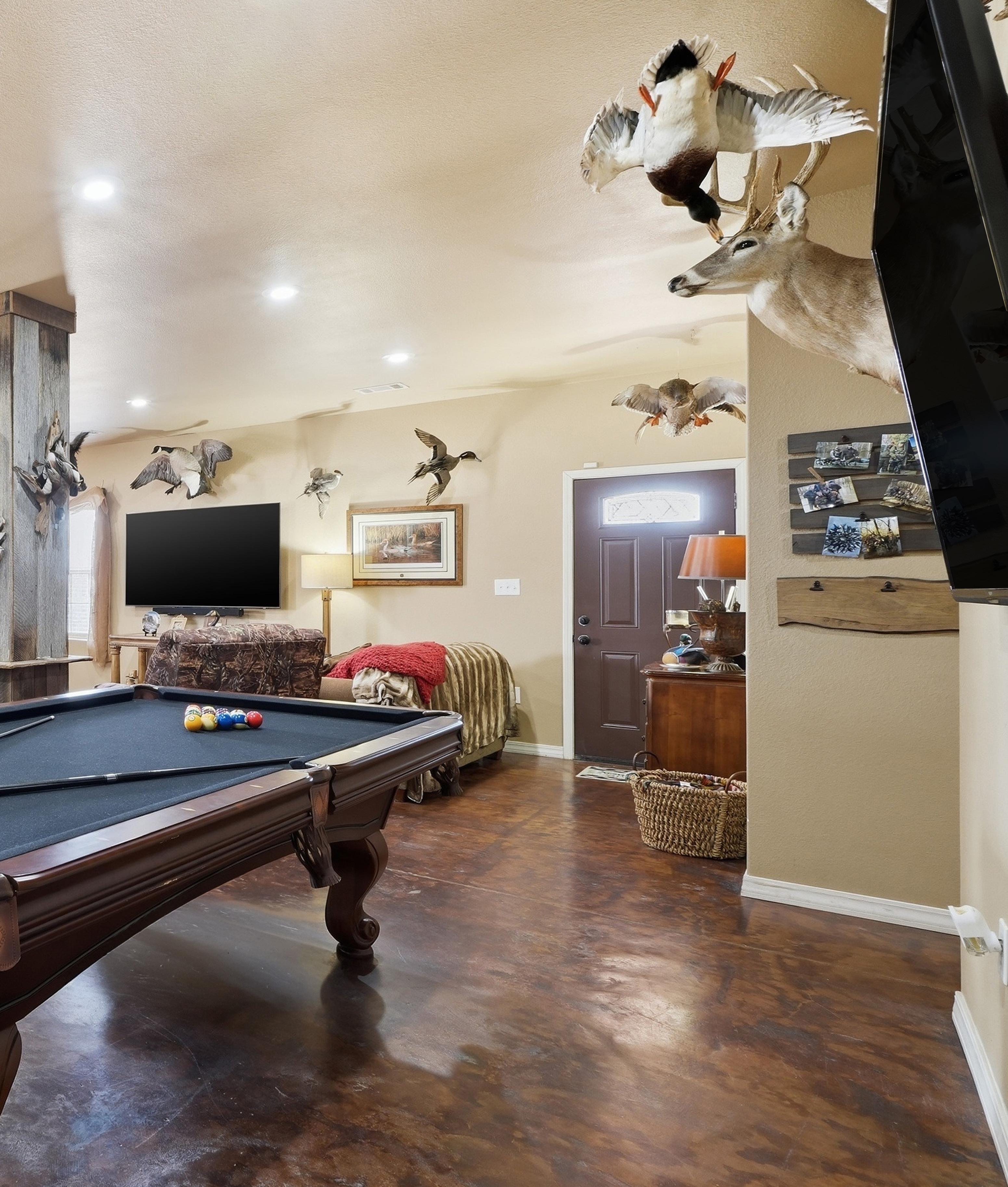 • Living room complete with pool table and wood burning stove