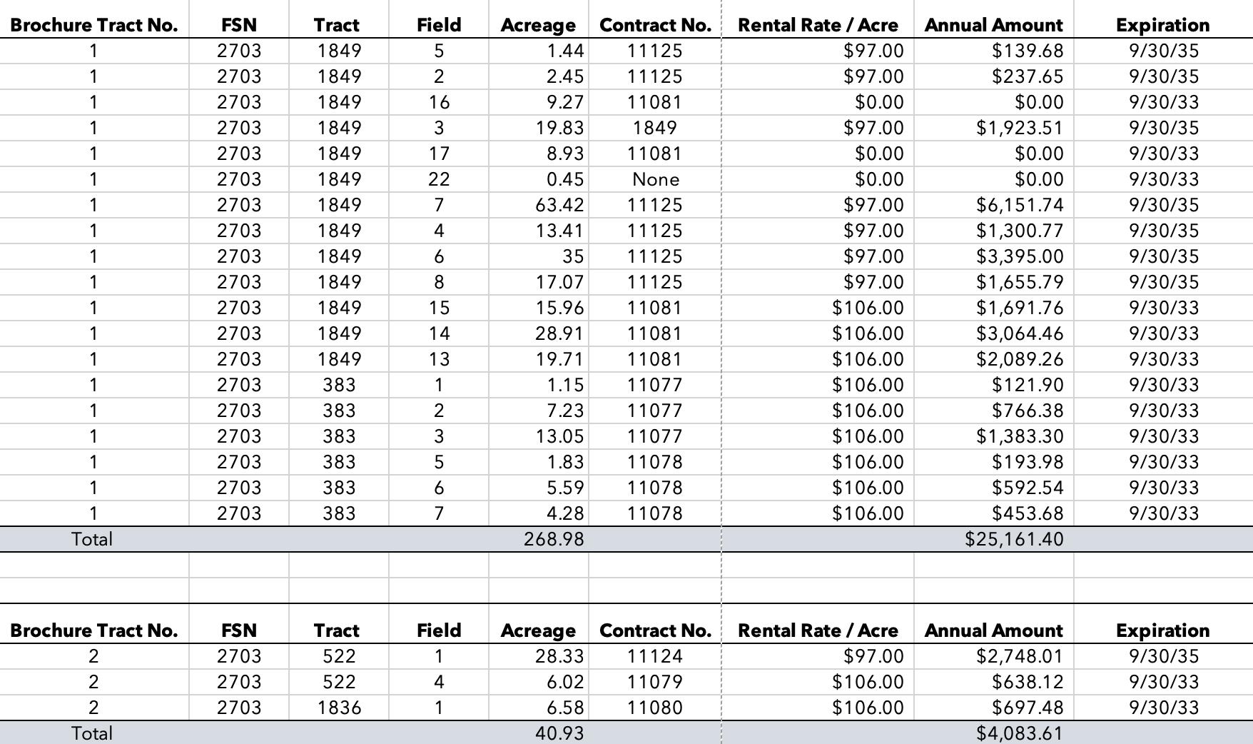 tion Reserve Program which improves wildlife habitat and enhances each tracts hunting opportunities. Additionally, enrollment in the program provides additional annual income. More information and copies of the CRP contracts can be found in this brochure.