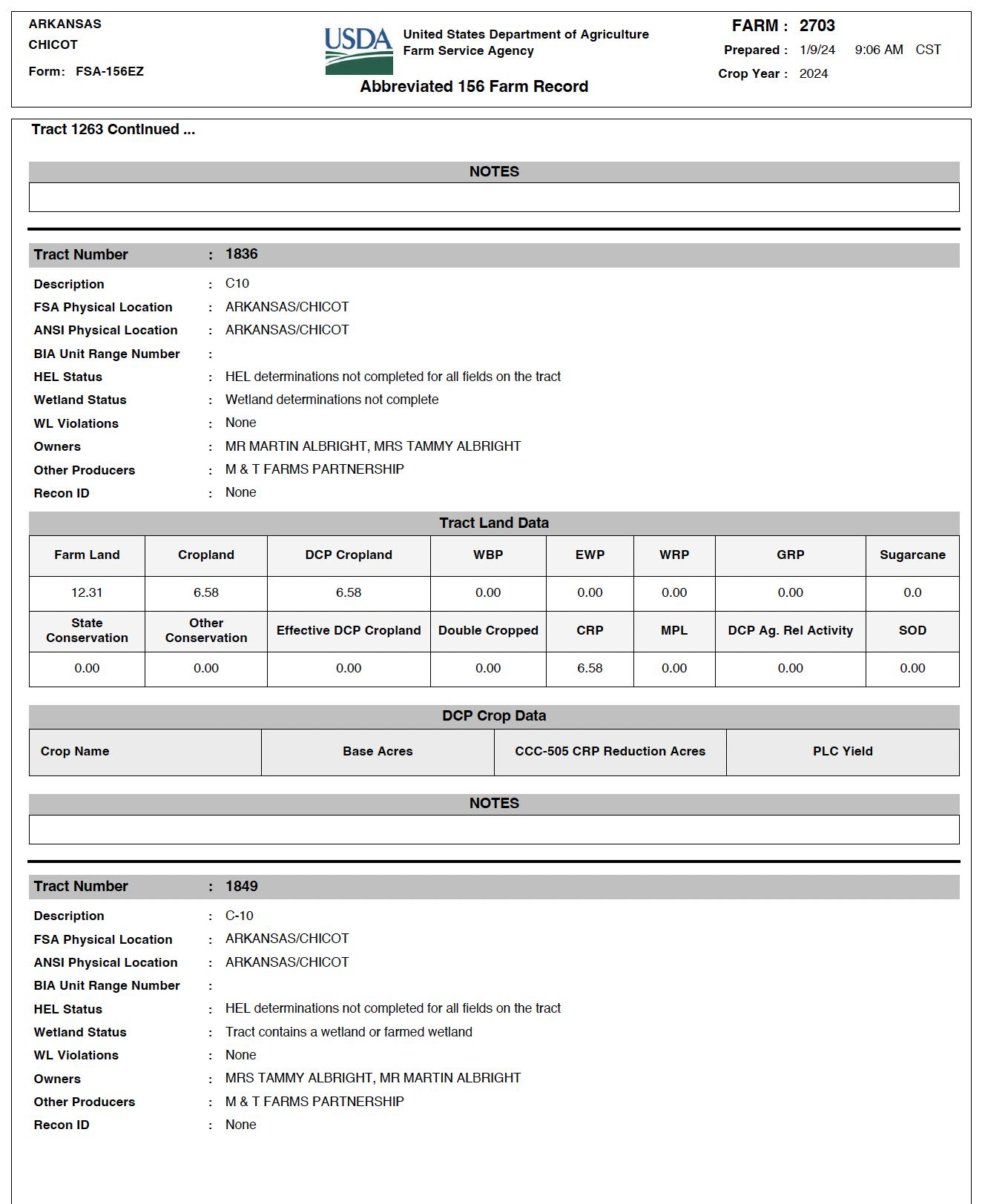 CHICOT COUNTY FARM SERVICE AGENCY 3219 S HWY 65 82 LAKE VILLAGE, AR71653-0152 1 28.38 01/09/2024