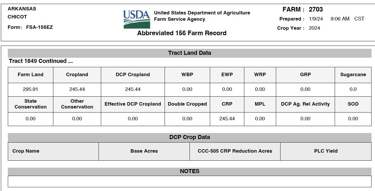 NOTE: The following statement is made in accordance with the Privacy Act of 1974 (5 USC 552a - as amended). The authority for requesting the information identified on this form is the Commodity Credit Corporation Charter Act (15 U.S.C. 714 et seq.), the Food Security Act of 1985 (16 U.S.C. 3801 et seq.), the Agricultural Act of 2014 (16 U.S.C. 3831 et seq) the Agricultural Improvement Act of 2018 (Pub. L. 115-334), the Further Continuing Appropriations and Other Extensions Act, 2024 (Pub. L. 118-22), and the Conservation Reserve Program 7 CFR Part 1410. The information will be used to determine eligibility to participate in and receive benefits under the Conservation Reserve Program The information collected on this form may be disclosed to other Federal, State, Local government agencies, Tribal agencies, and nongovernmental entities that have been authorized access to the information by statute or regulation and/or as described in applicable Routine Uses identified in the System of Records Notice for USDA/FSA-2, Farm Records File (Automated). Providing the requested information is voluntary. However, failure to furnish the requested information will result in a determination of ineligibility to participate in and receive benefits under the Conservation Reserve Program.