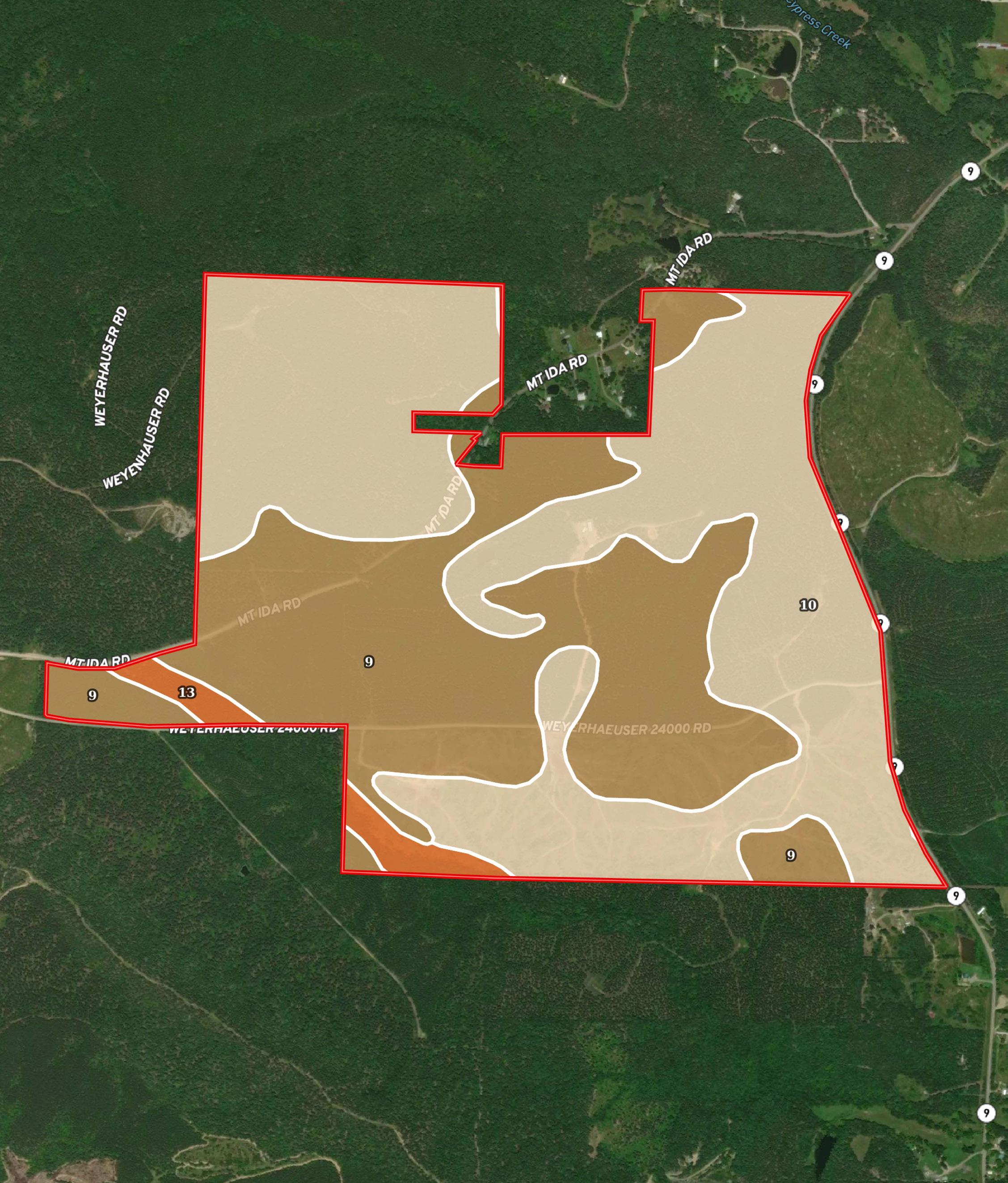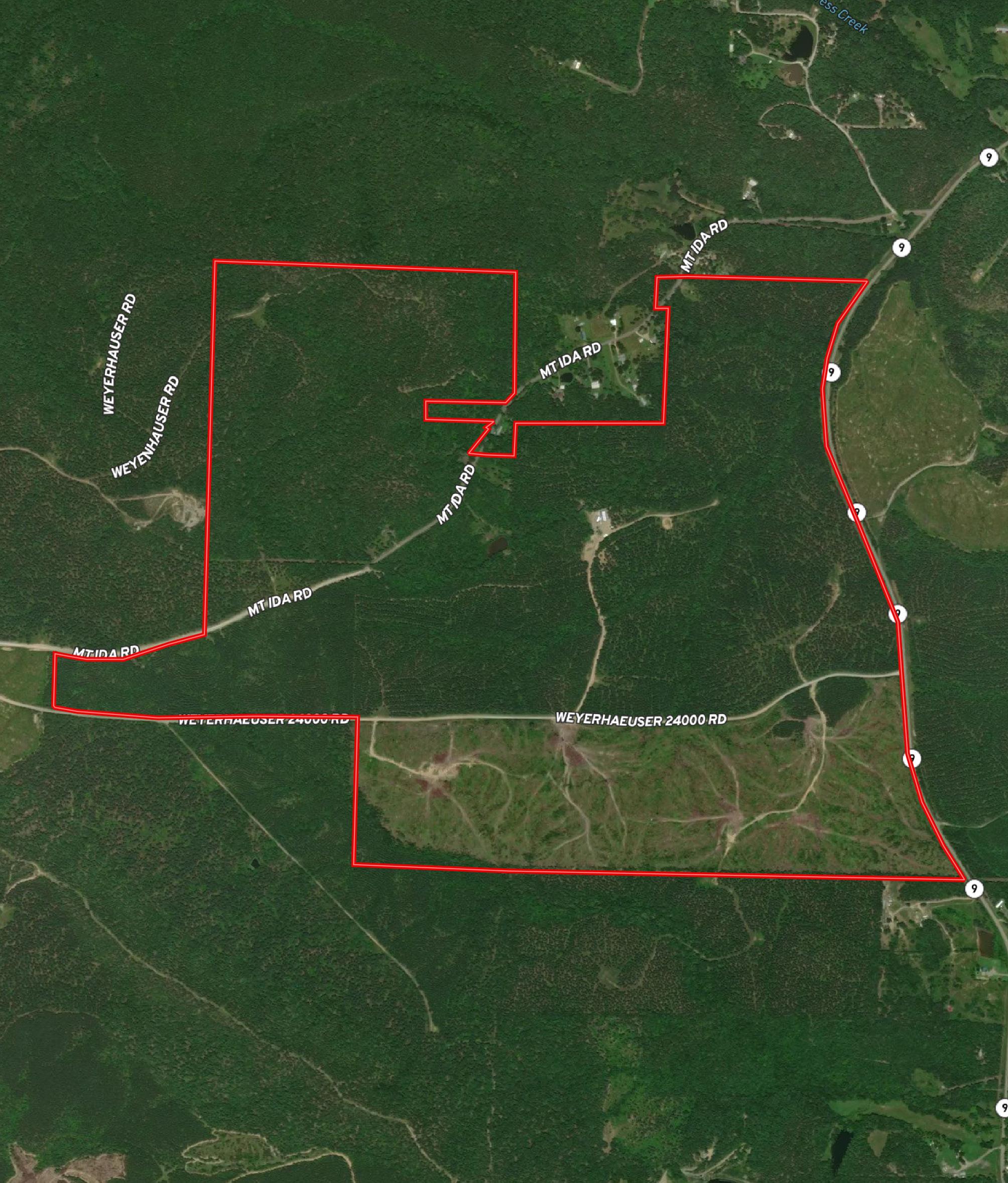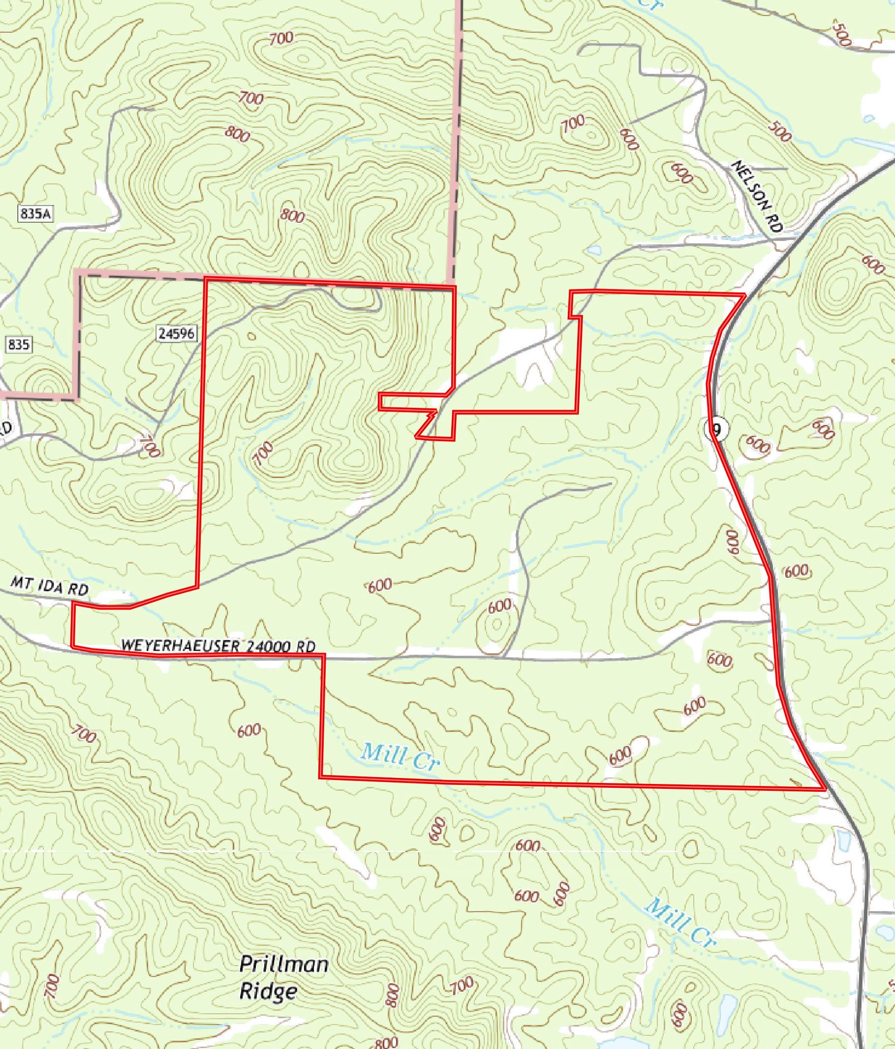 The property is easily accessible from Arkansas State Highway 9, Weyerhaeuser Road 24000, and Mt. Ida Road.