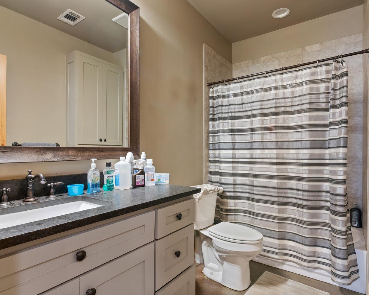 Adjacent to the great room is the 20’ x 20’ master suite, offering several comfortable amenities including a tucked 3’ x 10’ reading nook, a spacious in suite master bath with double vanity and large glass walk- in shower. The main floor also includes two spacious bedrooms, each with its own full bathroom. An additional half bath is conveniently located off the great room.