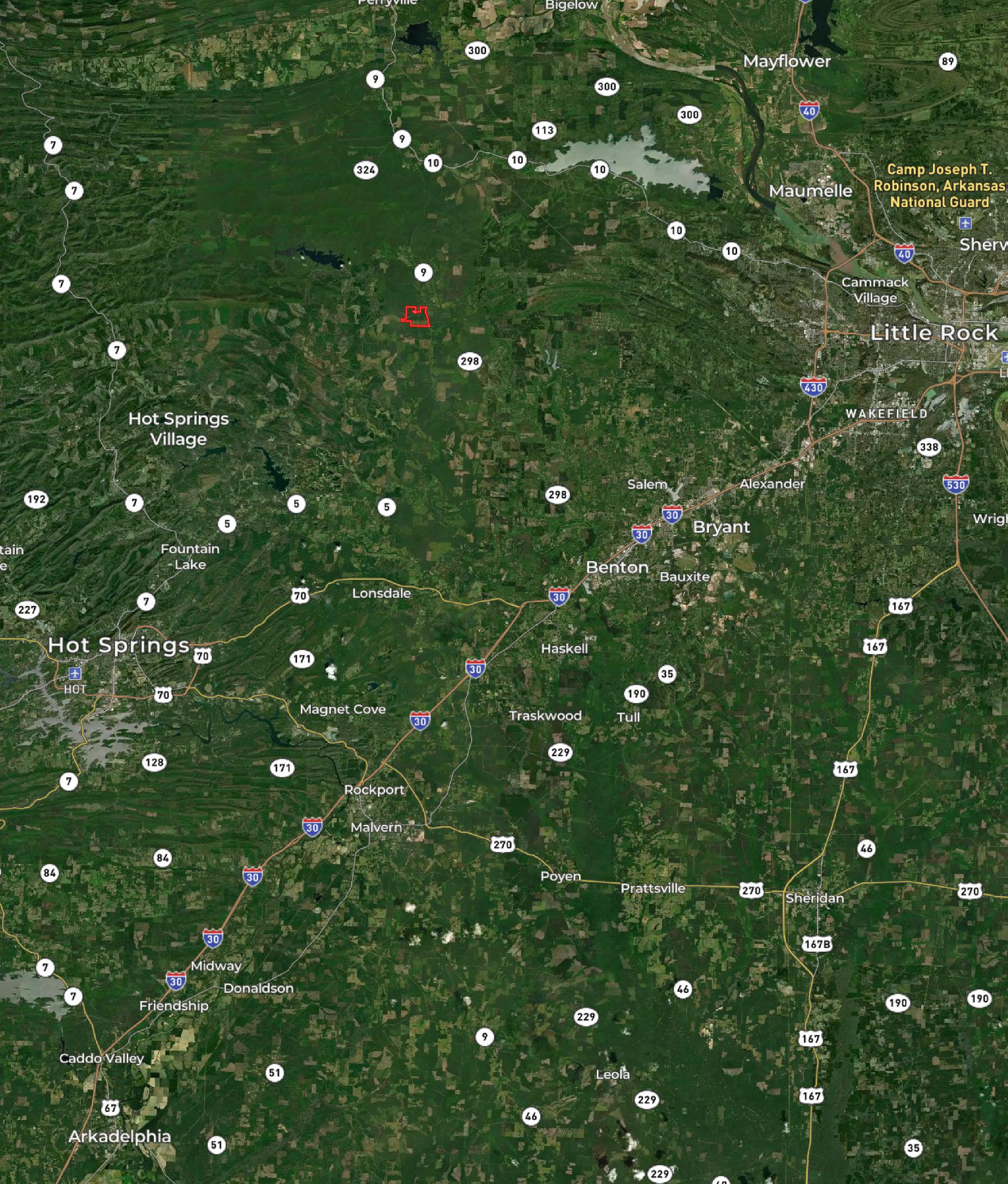 This 652± acre estate is located in central Arkansas near the community of Paron, an easy 25± minute drive to the western side of Little Rock for an evening of dinner or shopping, and also less than 40± miles to either airports in Little Rock or Hot Springs.