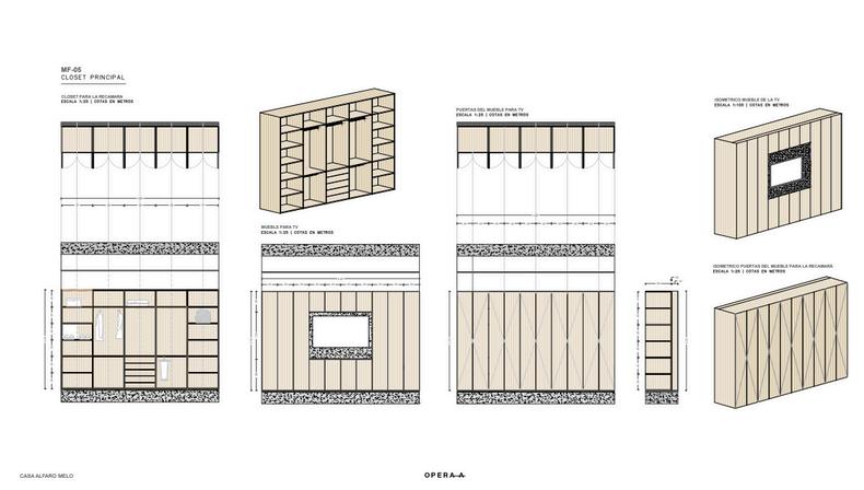 El proyecto consiste en diseñar el mobiliario fijo de una casa para un musico en donde el mobiliaro contiene el mismo lenguaje y semetria. Ademas de la selección de mobiliario para sala, comedor, bar, estudio de música, recámara principal, secundaria y terraza