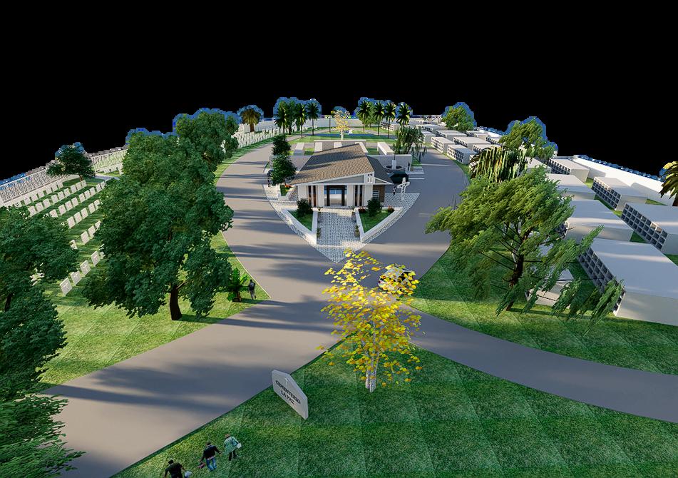 El proyecto consiste en un cementerio con múltiples opciones de espacios de sepultura, luto como criptas, nichos, una capilla y abundantes areas verdes Además su circulación significativa para mantener la percepción de la espiritualidad Para el desarrollo del cementerio se baso en el símbolo cristiano conocido como Ichtus formado por dos arcos que se asemejan a la figura de un pez