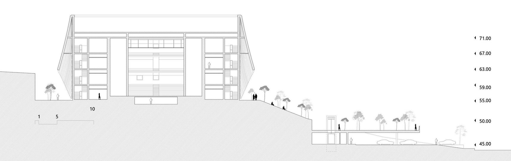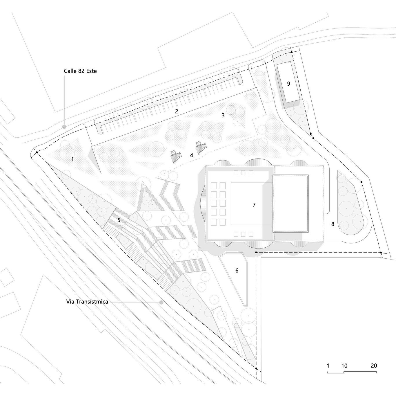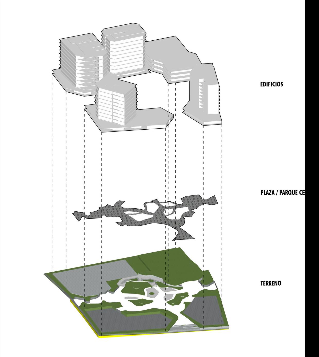 Entradaabierta Estacionamientos semi-soterrados Jardínverde Accesovertical Escalinataverde Espejodeagua Teatro Cargaydescarga Equipamentos