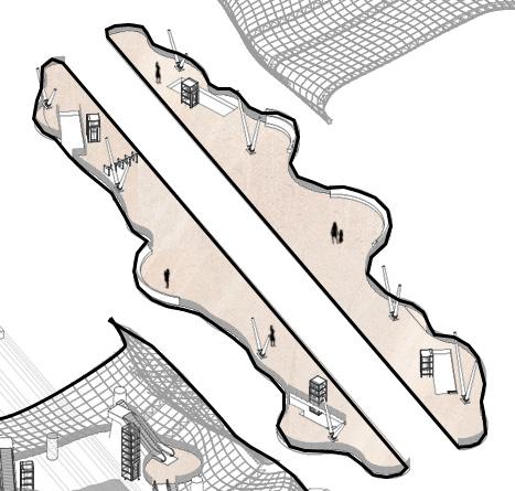 We first set up four microphones every fifty meters apart to measure and analyze the sound created by the traffic. We used the data to design the structure’s shape to reduce the noise inside with isolated acoustics.