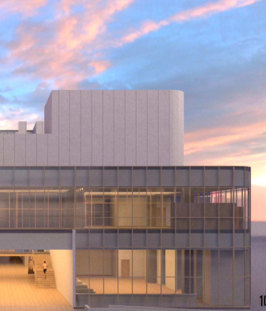 The building’s location will establish a connection among residence halls, science labs, and classrooms. To include the ideas of the master plan, there will be an open area at the front of the building connecting the street and the interior buildings. The design my colleagues and I created is below.