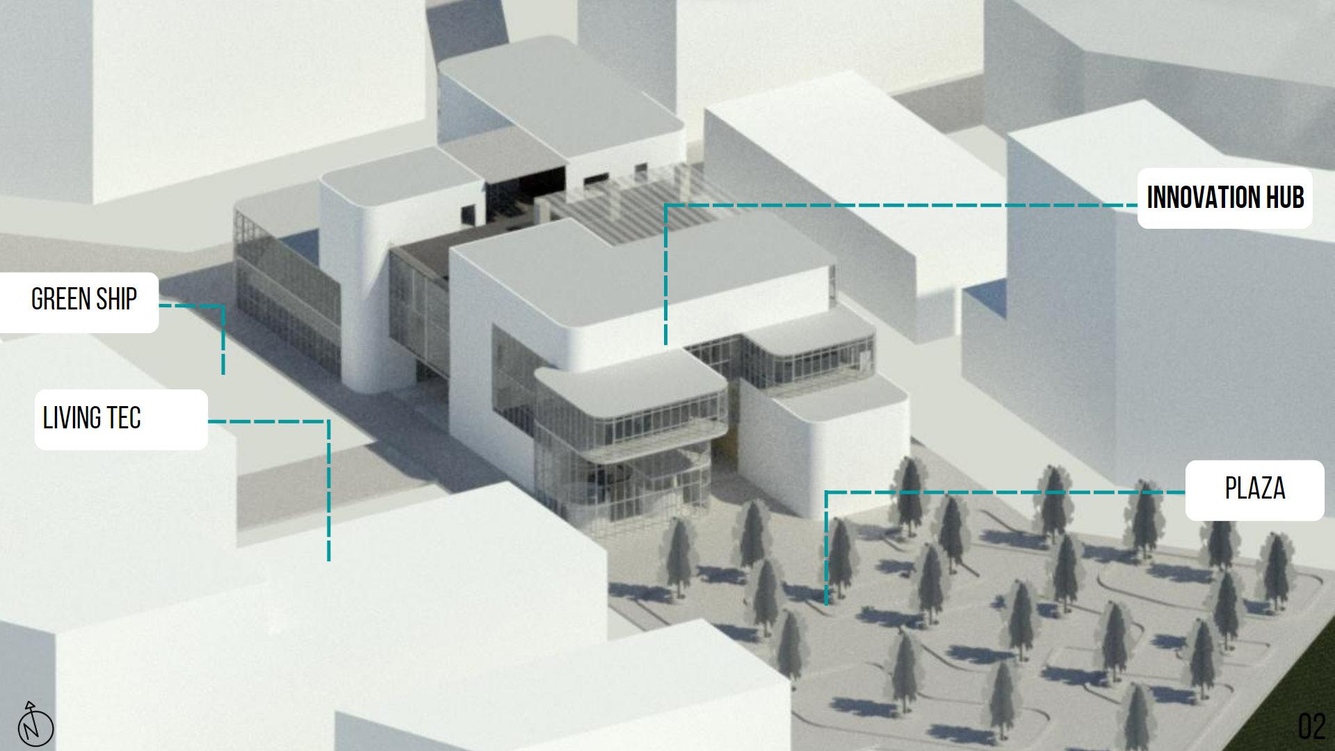 The Innovation Hub is a building planned on the campus of Tec de Monterrey where science and creativity converge. The building will incorporate spaces where people from different interests, backgrounds, and fields of study can collaborate to generate new ideas and creations.