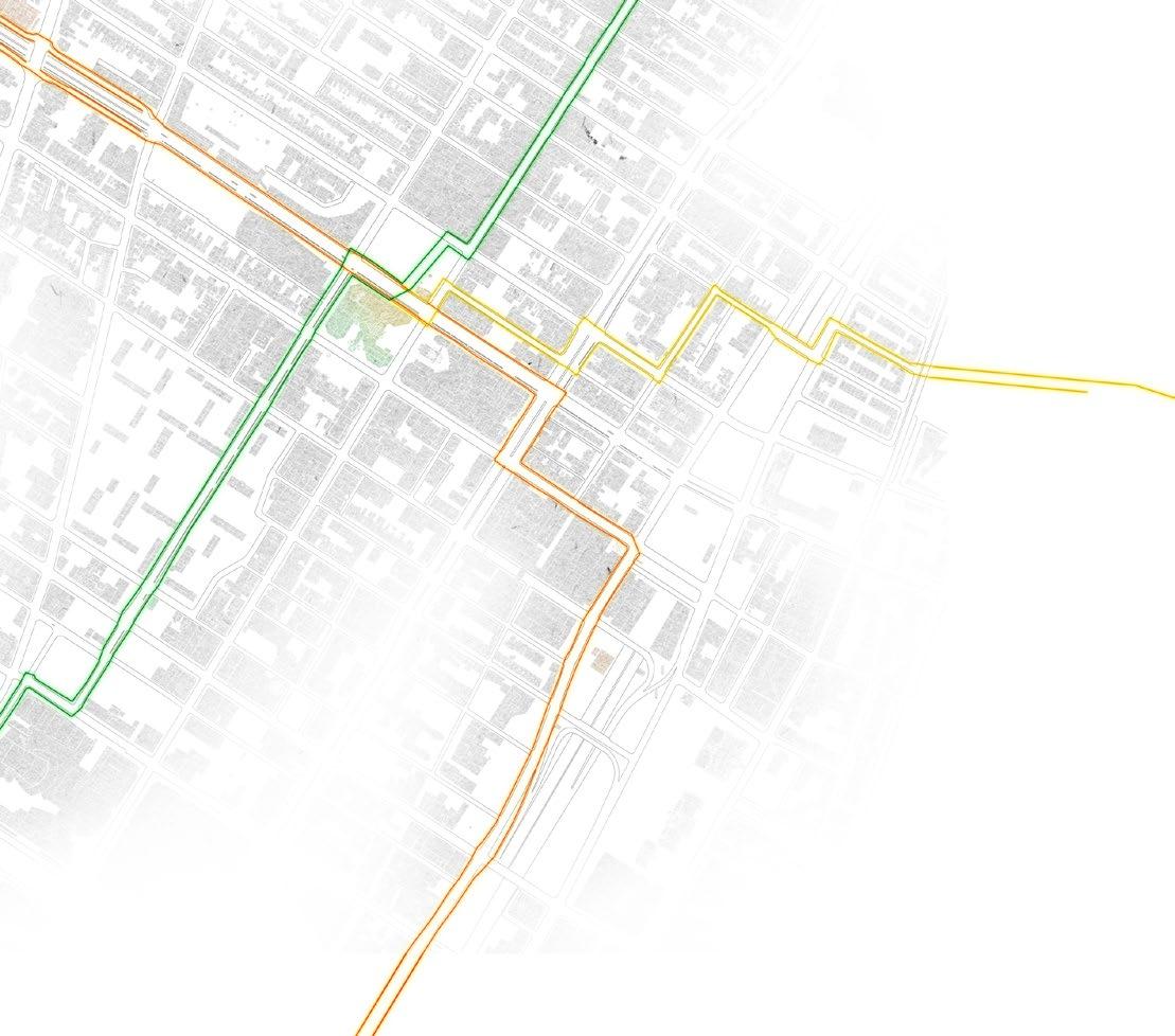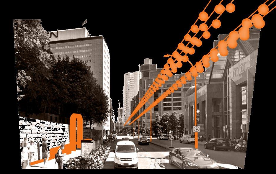 The expansion of cities and the need to decarbonize our lifestyles has rendered public transport crucial in our daily routines. La rue de la ligne proposes a reimagining of Montreal's iconic public transportation infrastructure: the metro system. The metro’s path is transposed aboveground with its iconic color-coding through a dynamic installation of light fixtures and modular furniture. The furniture provides public spaces for interaction along the metro’s route. As the train passes below, the lines of orbs light up and playfully oscillate, embodying the visceral sensation of the metro rushing past. La rue de la ligne revitalizes the wonder of public infrastructure in the collective imagination.