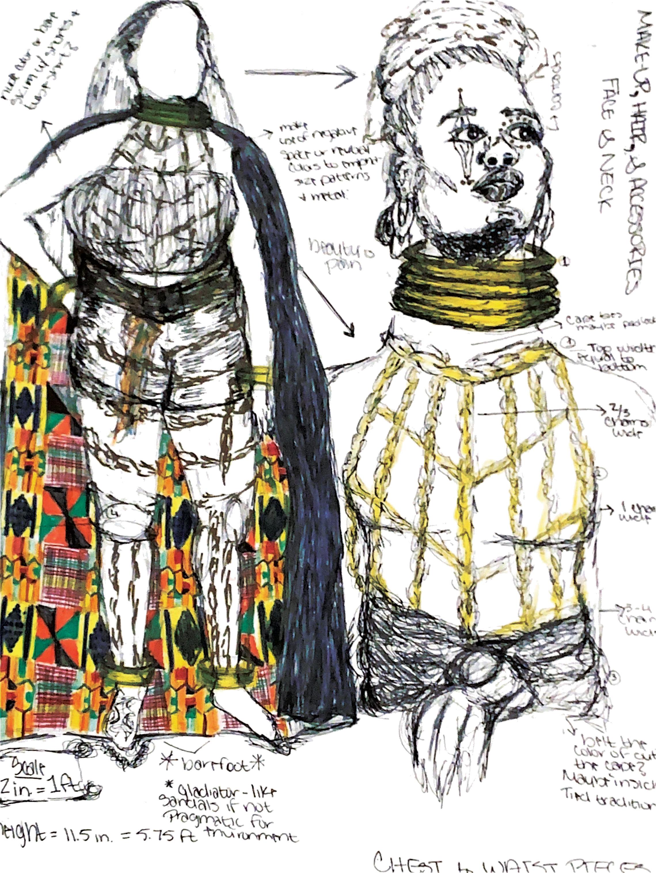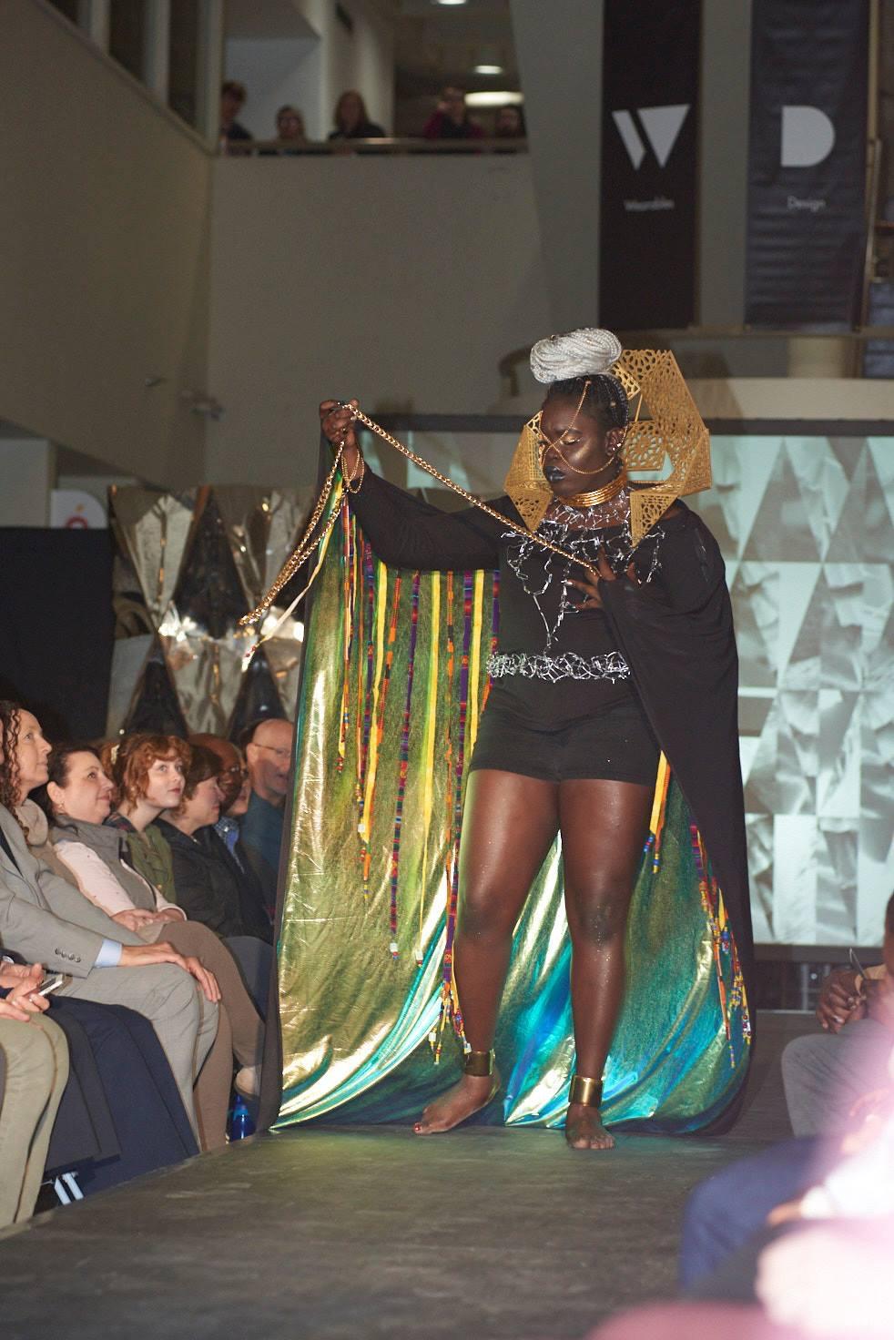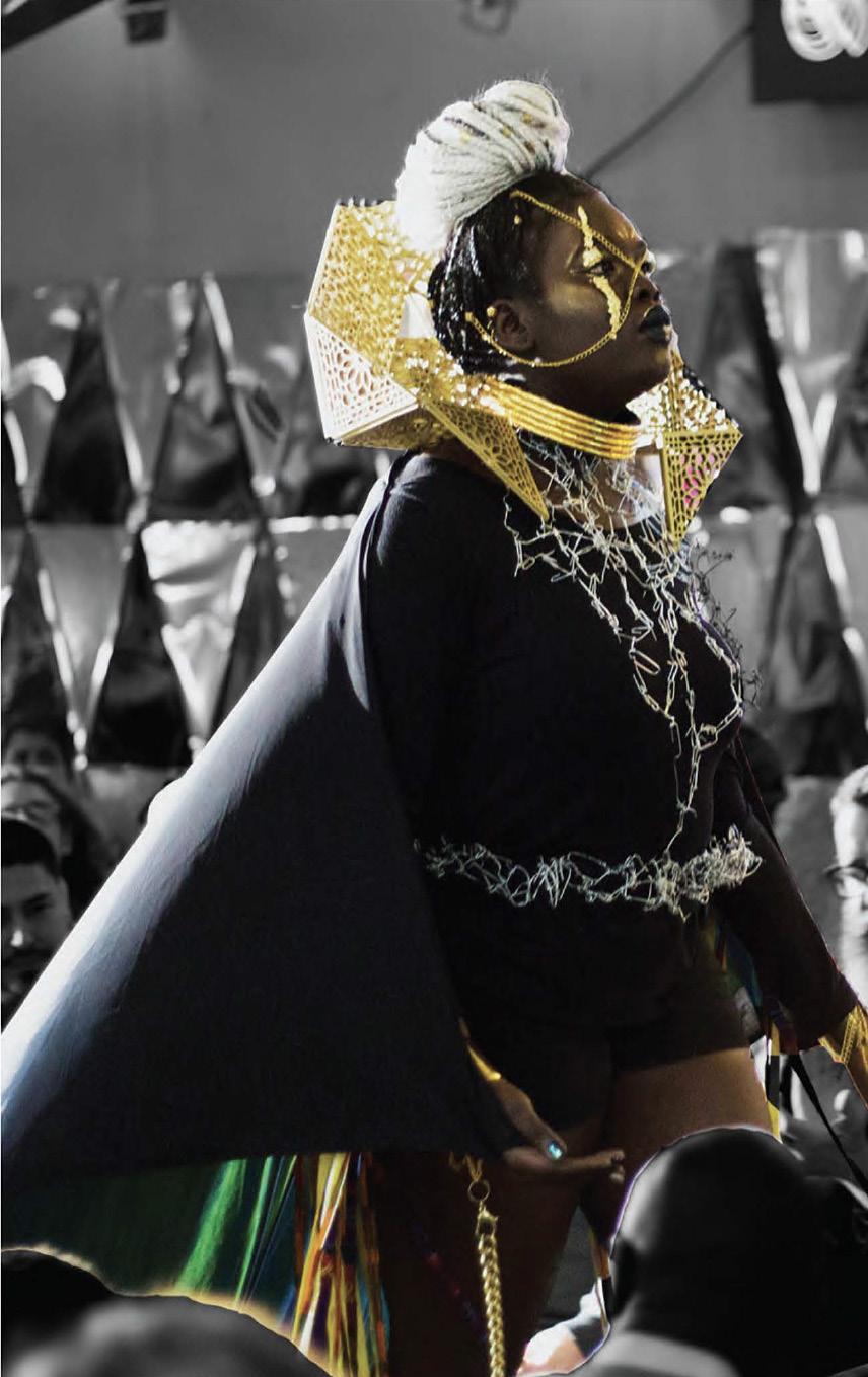 We designed a wearable design piece to represent the current situation in Sudan as well as other parts of Africa who are experiencing this never ending cycle of oppression following colonization. The full body piece emulates how the whole body interacts with African music & how the fate of the few impact many. The restricting yet elegant use of gold and silver represents beauty yet also exploitation of people for precious minerals. The exterior cape’s dullness coupled with colorful interior symbolizes the hope of the people following the revolution in 2018.
