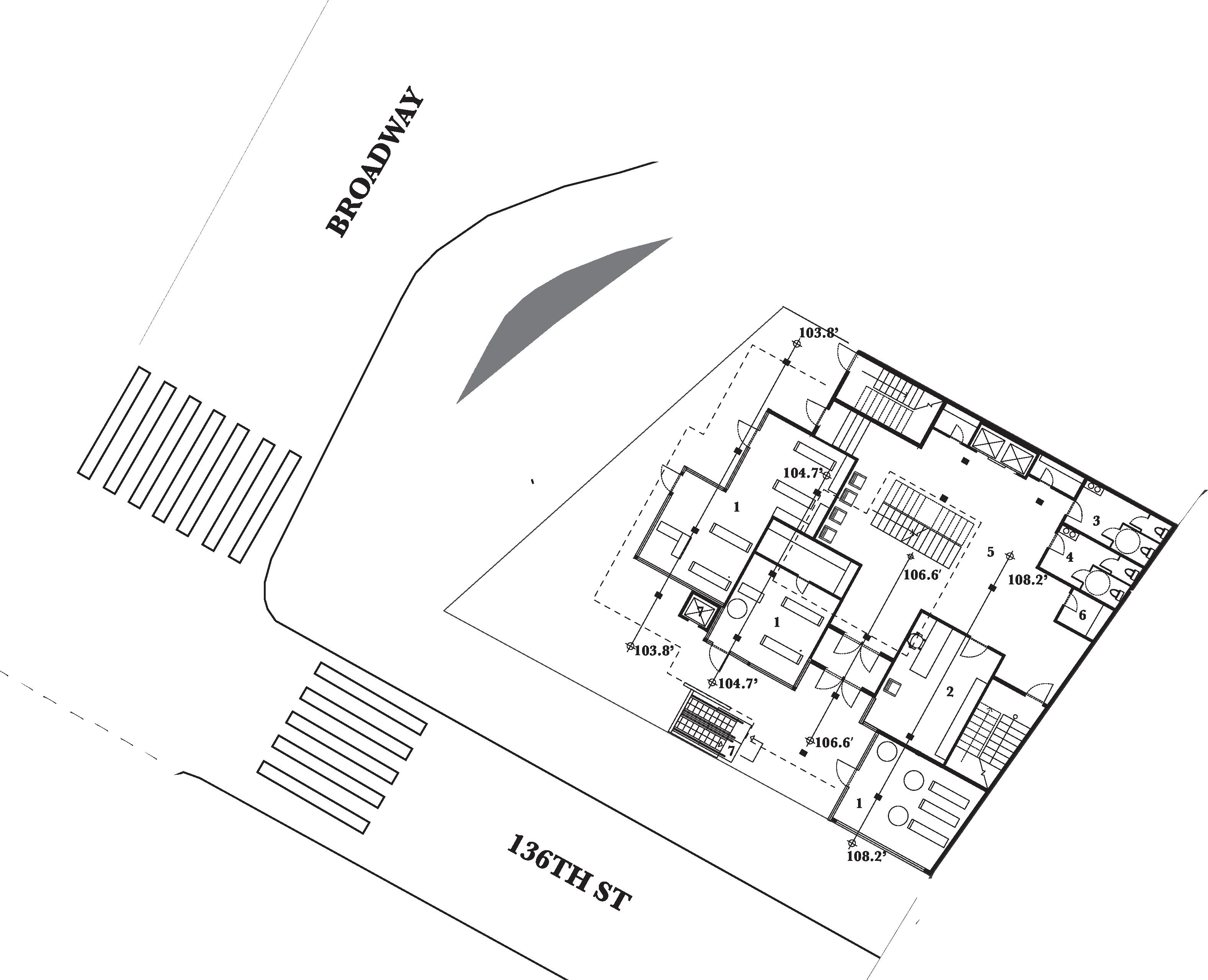 GROUND FLOOR 1. RETAIL 2. OFFICE 3. WOMEN’S RESTROOM 4. MEN’S RESTROOM 5. LOBBY 6. JANITORIAL/MAINTENENCE ROOM 7. ACCESS TO TRAIN MEZZANINE
