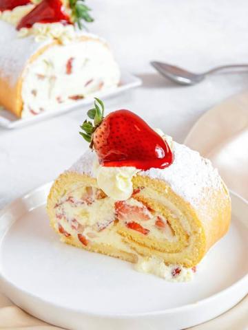 Esponjoso Bizcochuelo de vainilla relleno de fresas con crema