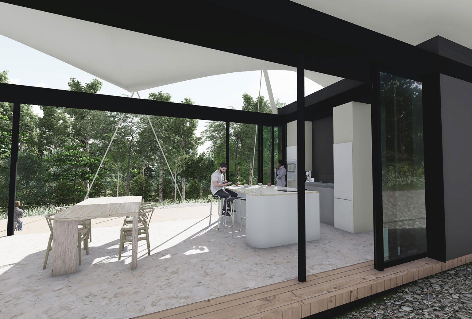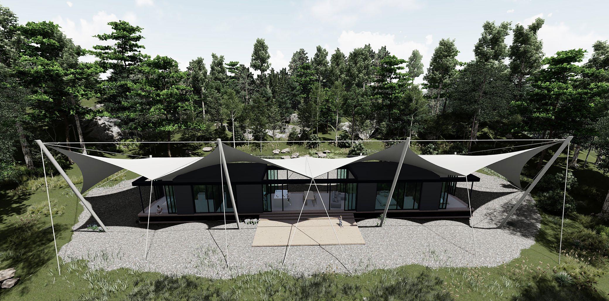 Response: Using the Rhino tools, I drew the Tent House model; rendered it in Lumion adding materials and people and creating entourage.