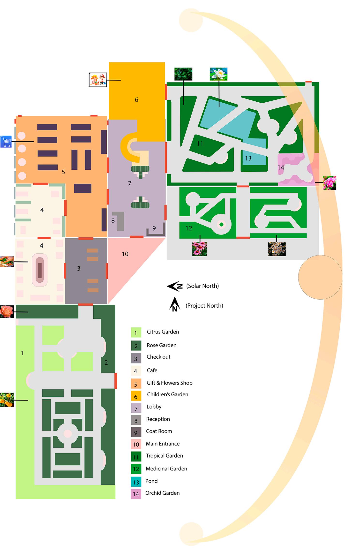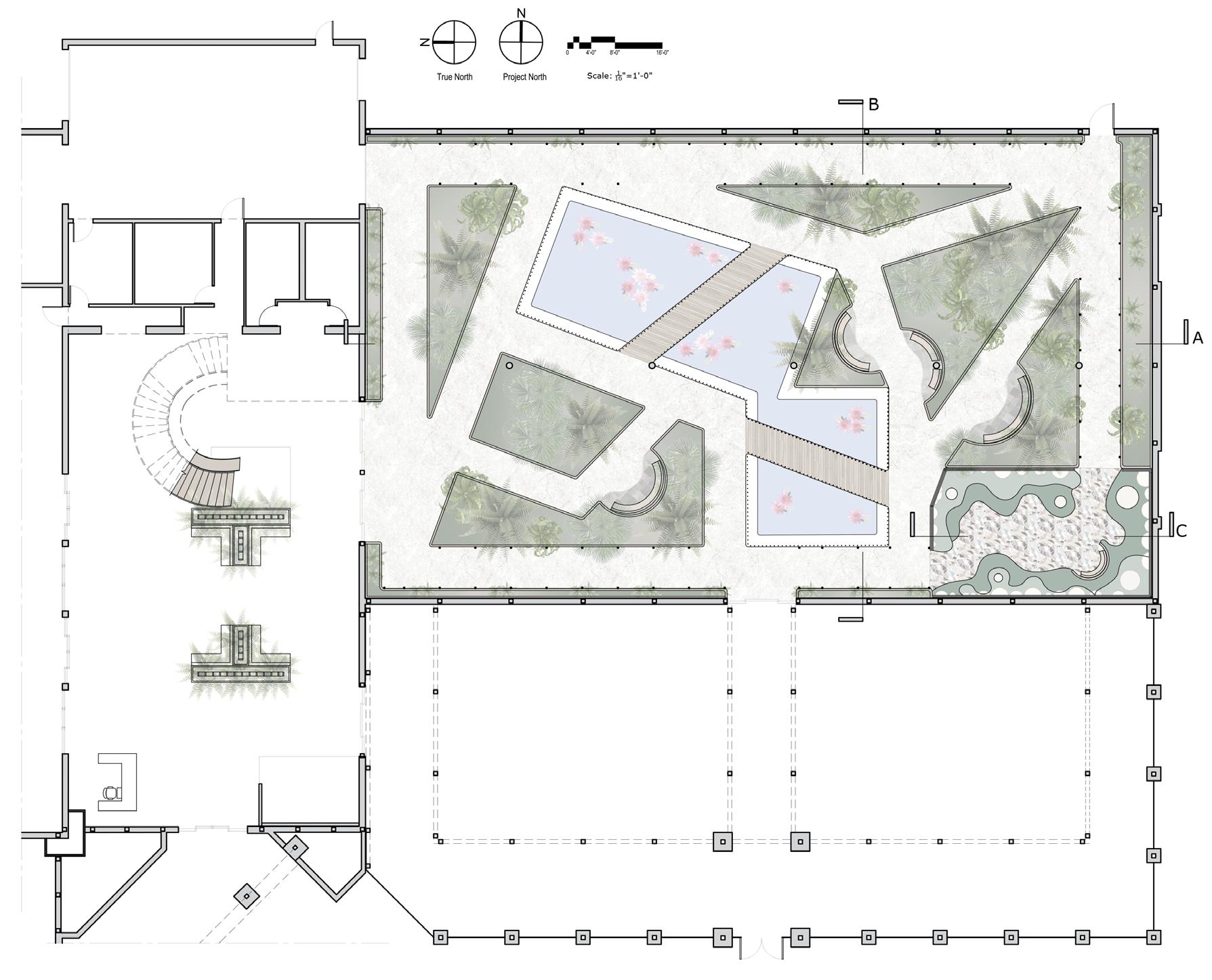 Challenge: For this project, we were asked to rebuild an existing garden center in Ohio, where we were given the opportunity to create several types of indoor and outdoor gardens of our choice. The center should also include a children’s garden on the mezzanine with the creation of a new staircase and a café with additional windows on the north wall.