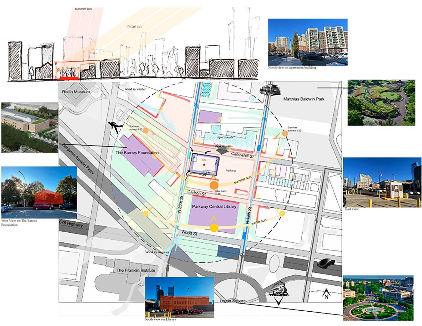Challenge: Students were asked to choose the theme of the museum, the building of which should be designed in Philadelphia in accordance with the program, on a given area, taking into account the surrounding infrastructure and the height of neighboring buildings. The site is located at 20th and Callowhill St. across from the Barnes Foundation and behind the Free Library.