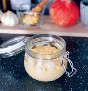 8. Bland ingrediensene til sausen og sett den kaldt mens paien er i ovnen.