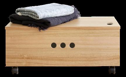 Handy solid timber storage boxes, and ottomans that can be made in the fabric of your choice.