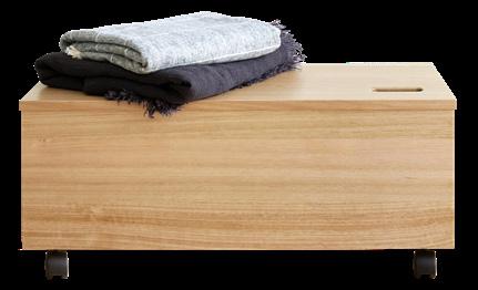 Handy solid timber storage boxes, and ottomans that can be made in the fabric of your choice.