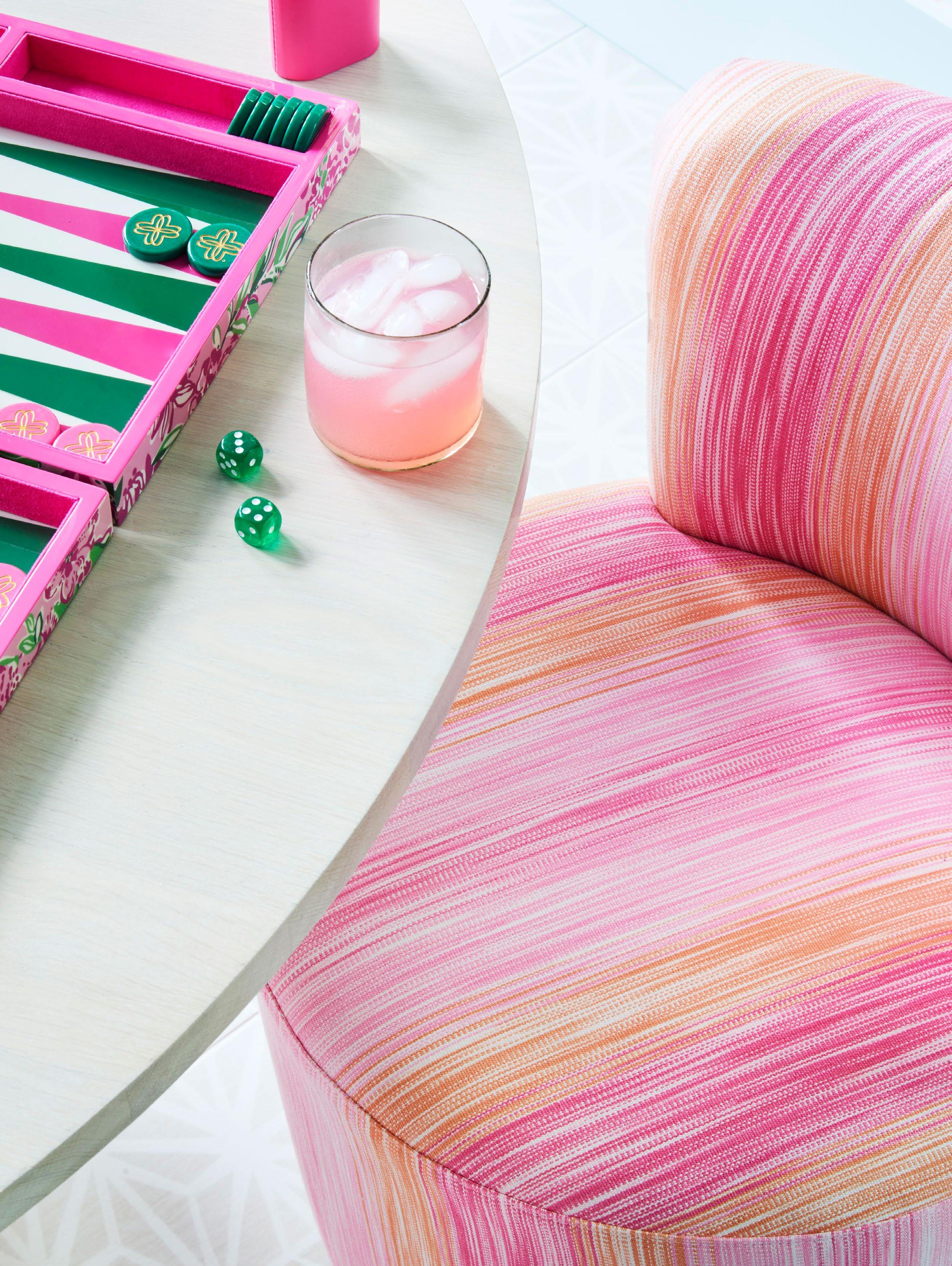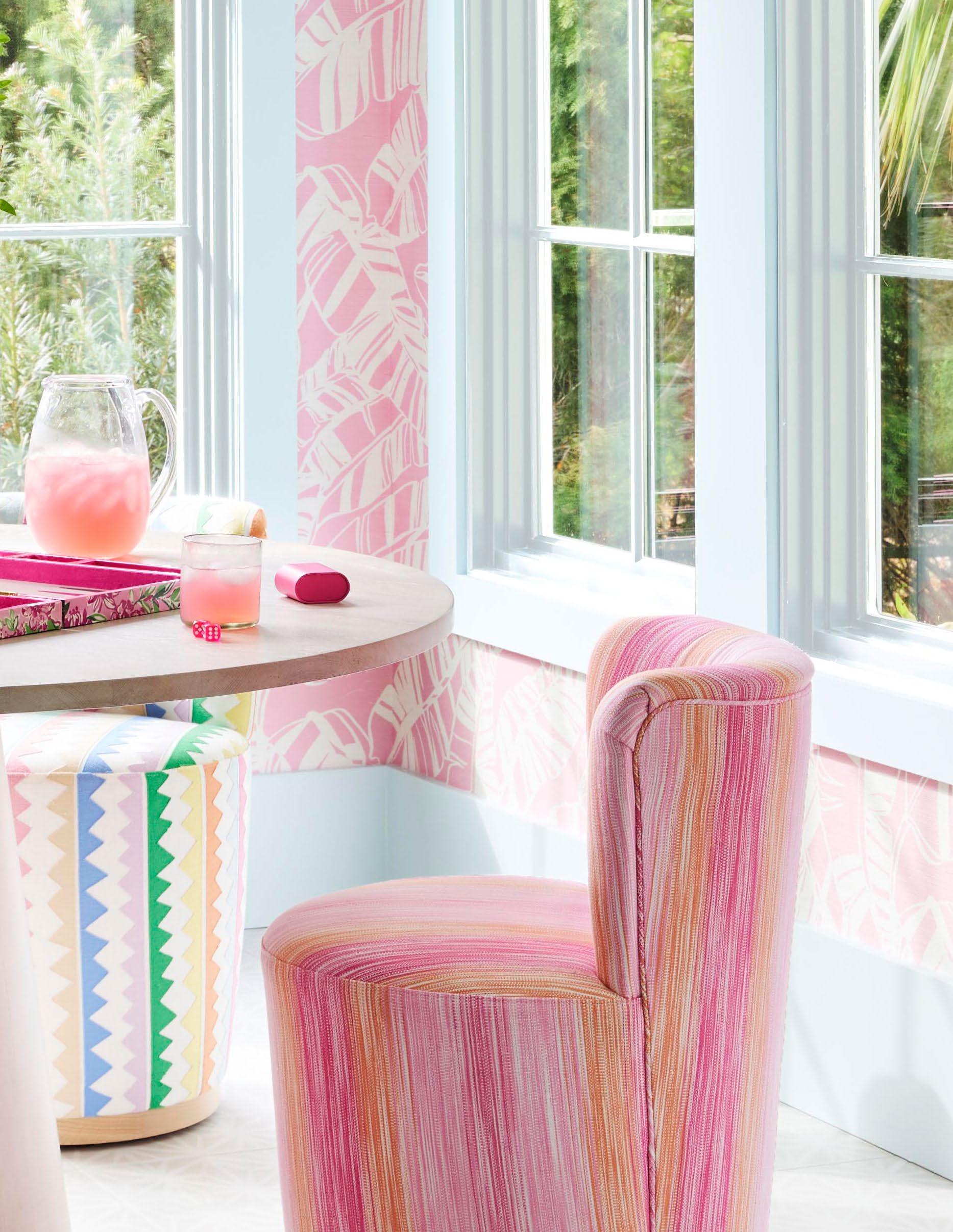 The fabric and wallcovering details are perfection; creating varying degrees of tropical designs and juicy colors in a thoughtfully curated collection that is sure to spark a Lilly-craze in the design industry!