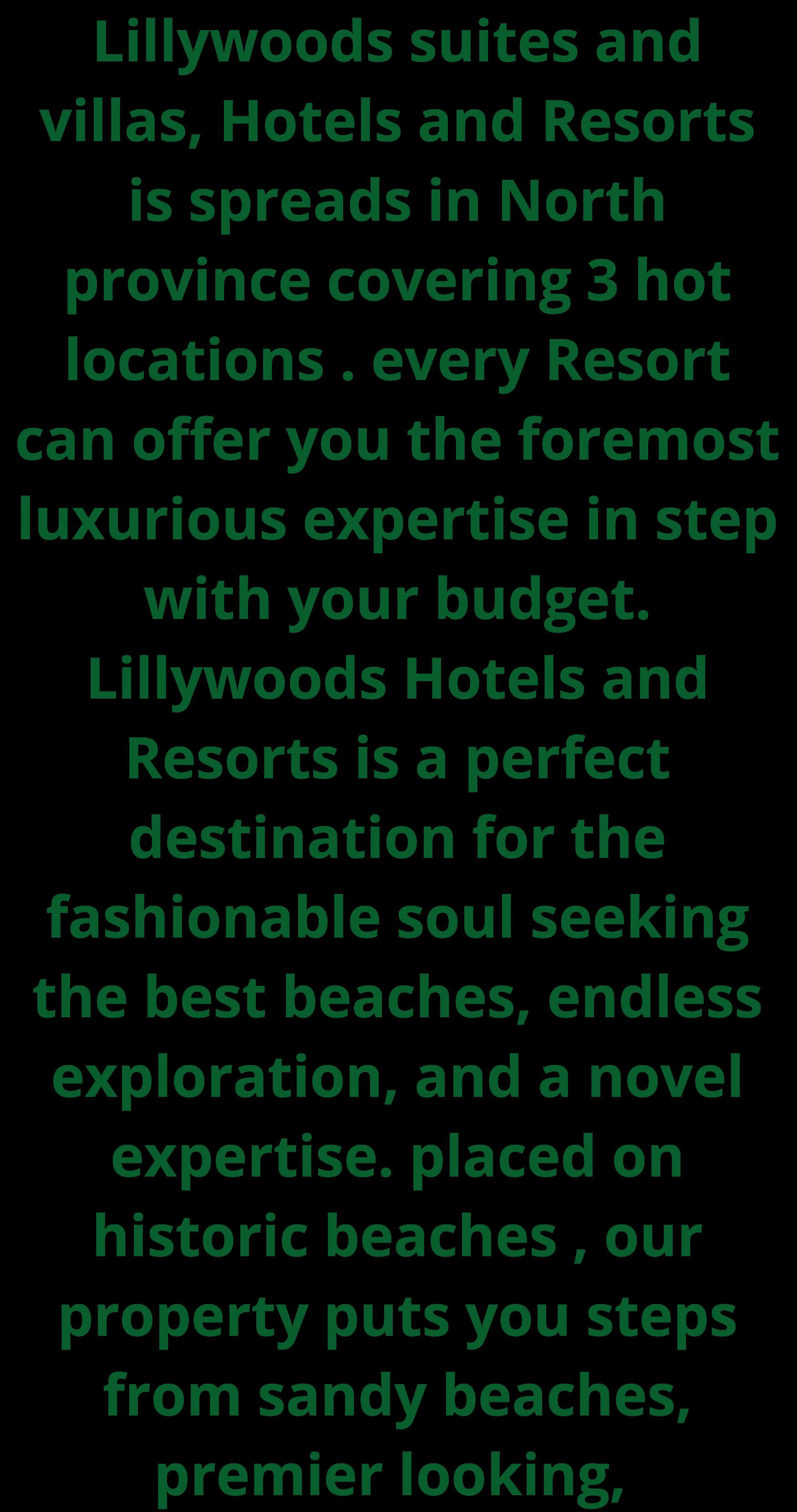 Lillywoods suites and villas, Hotels and Resorts is spreads in North Goa covering three hot locations . Each Resort will give you the most luxurious experience according to your budget