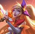 they so powerful?! Rakan charged headfirst at Poppy, only to narrowly avoid the downward swing of her hammer. Xayah zipped toward them, but Lulu threw Pix at her face. Before Xayah could retaliate against the flapping familiar, Lux shot an orb of light that bound Xayah and Rakan in prismatic rings.