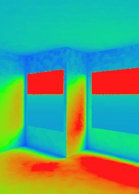 With the addition of the solar shading frame, using IES LUX simulation the light uniformity in plan dramatically improves. Less light is concentrated near the window. This implies that there would be less heavy shadow contrasts which people with dementia may see as a hole in the ground. Creating difficulties in their comprehensibility that leads to increased levels of agitation.