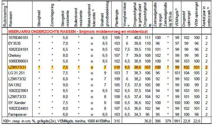 CATALOGUE PAYS-BAS RECOMMANDATION 2025, MAÏS ENSILAGE, VARIÉTÉS DEMI-PRÉCOCES ET DEMI-TARDIVES