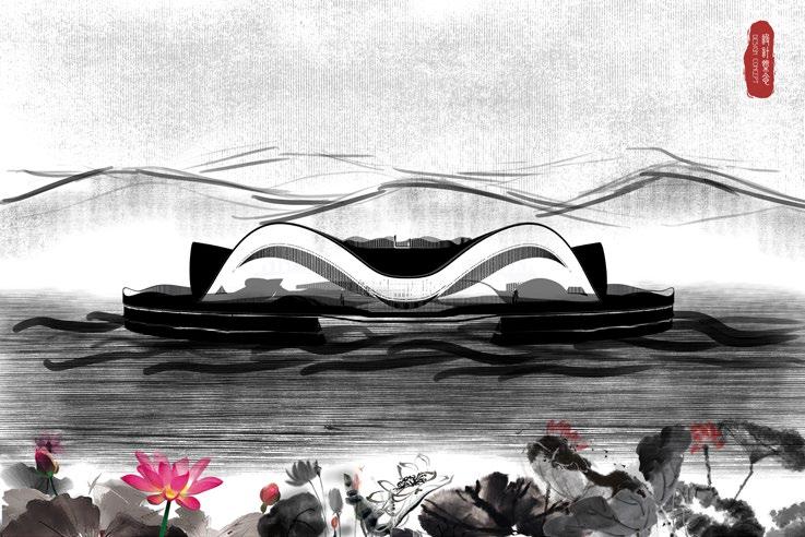 Hangzhou has expanded rapidly over the past 60 years through land reclamation. To control this expansion, the government now limits development to the east, leaving the west for nature and tourism. West Lake is this boundary. Inspired by the ancient emperors’ inspection tours, this project designs a traditional style floating pavilion on the lake, bringing nature indoors and creating a public celebration space.