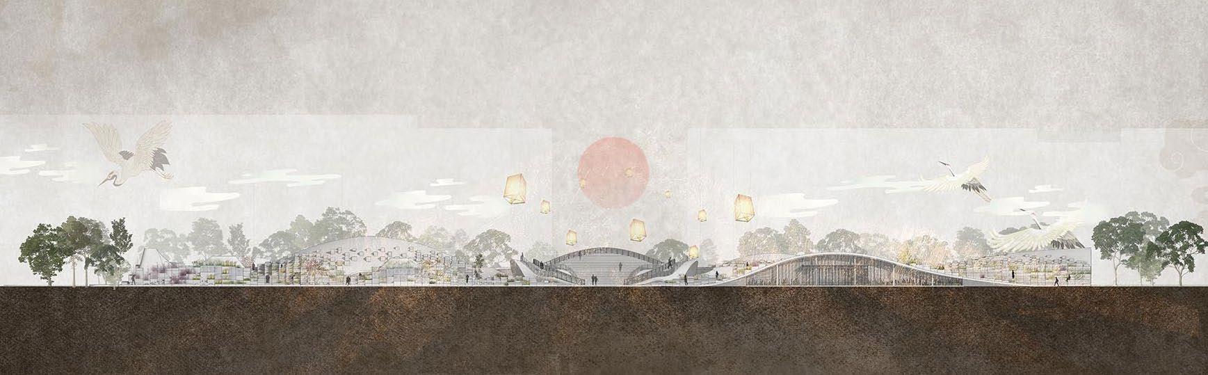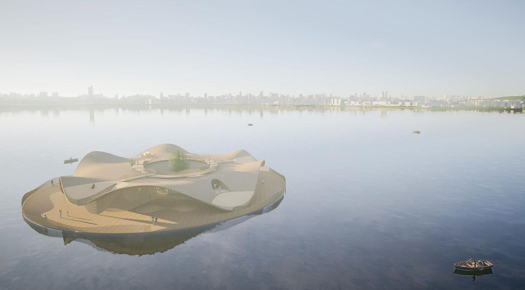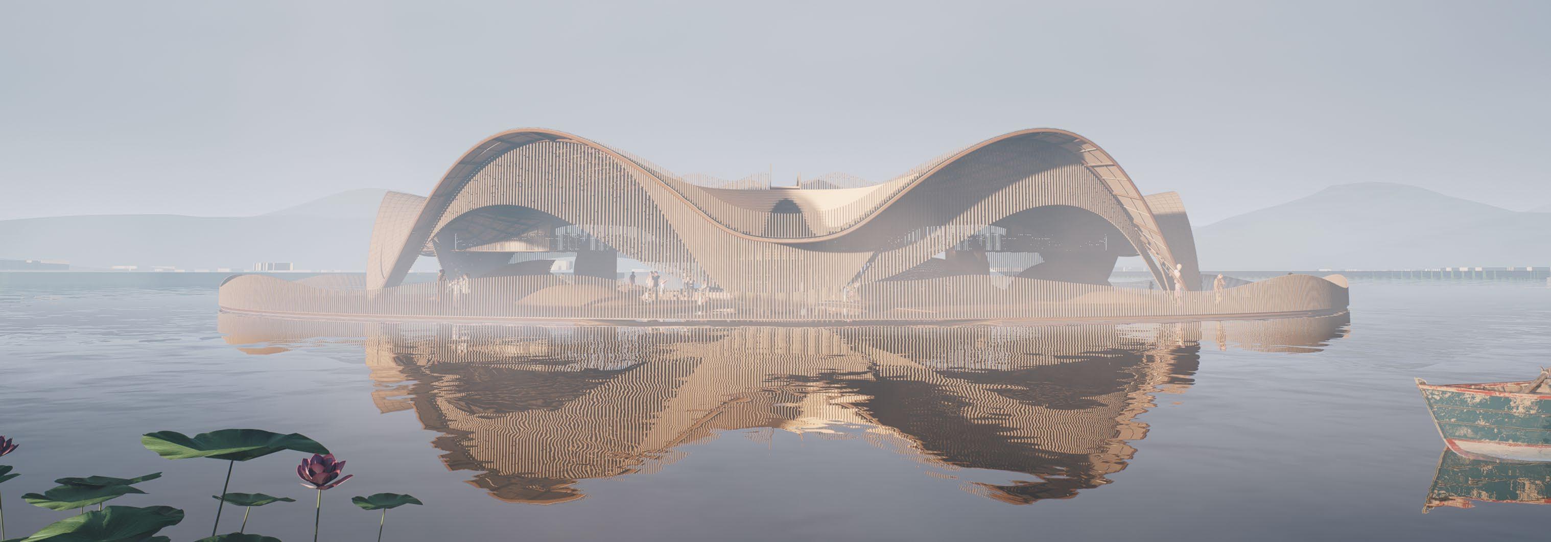 The project is located in Hangzhou, a city with centuries of cultural heritage that has experienced rapid urban expansion in recent years. The project is centered on the West Lake, an iconic landmark that demarcates the boundary between development and protection, in response to increasing land consumption and environmental degradation. In celebration of the 30th United Nations Climate Change Conference, the project introduces a floating architectural installation derived from traditional Chinese forms and rituals. The public can express their environmental concerns and wishes through symbolic activities such as releasing river lanterns. These messages provide government officials with an informal and participatory way to listen to the public's voice. The supporting urban facilities near the West Lake serve as flexible spaces for education, celebration, and environmental advocacy. The project aims to create a platform where people, policies, and nature converge to encourage dialogue and promote sustainable development through culturally rooted design.