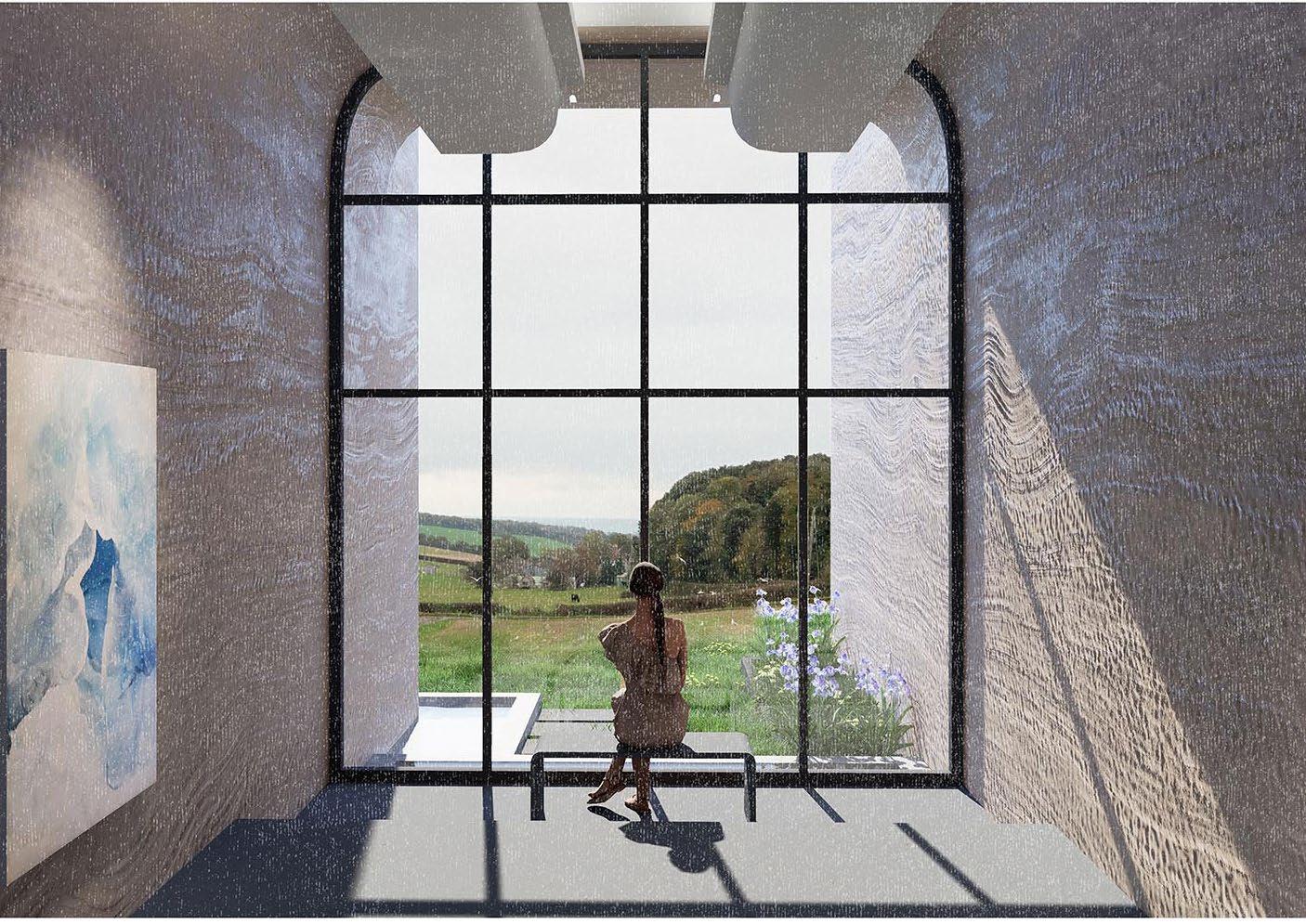 Sitting at the end of gallery to look far into the unique Kent Down landscape