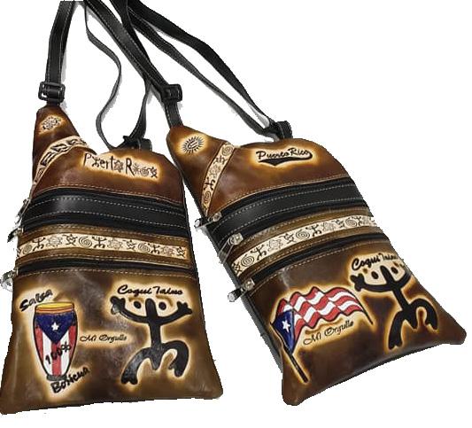Puerto Rico leather crossbody bag with "coquí" symbol.