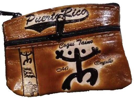 Puerto Rico Coin Purse with the PR* flag, "Taino" Sun, and a "coquí" symbol, two pockets with zippers.