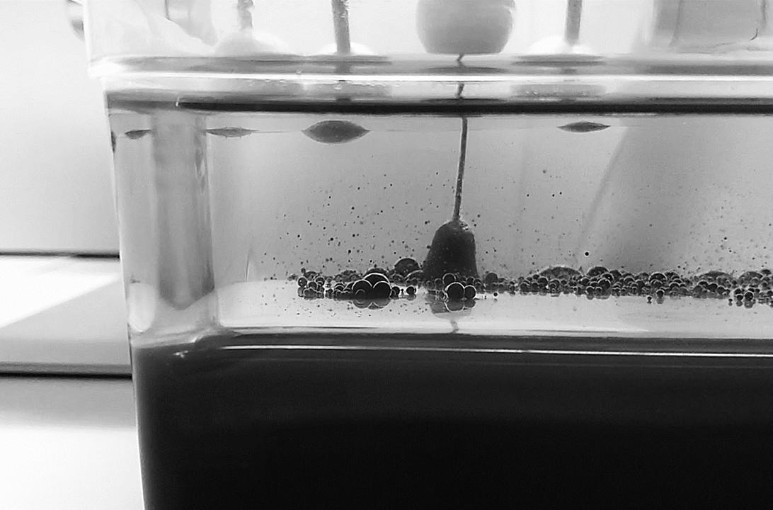 在讀設計時,帶給我最大壓力的人是我爸爸。他認為設計是一項不賺錢 且無用的工作,沒有證照考試,成績也不是繳交就有,在台北物價高花 費也跟著提升,好多的一切總是成為入學前我們吵架的理由。但在我隻 身來到台北念書後,最體諒而且最擔心的也是他。他總會在我搭的末班 車時段開一小時的車程來高鐵站載我,總是在我戶頭快要見底時偷偷塞 幾千塊,然後搪塞著理由說是給我的零用錢。有好多好小的乘載著壓力 的愛就像油包覆住黑色的墨水一樣,而牽引起他們的動力則是來自上 方的鴨腳,那是象徵著他樸實的愛,象徵他總在上方支持我的代表。