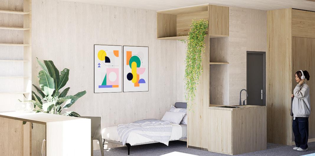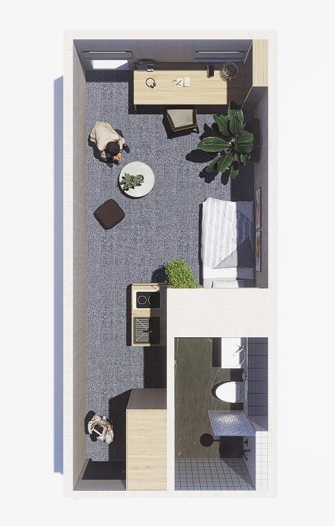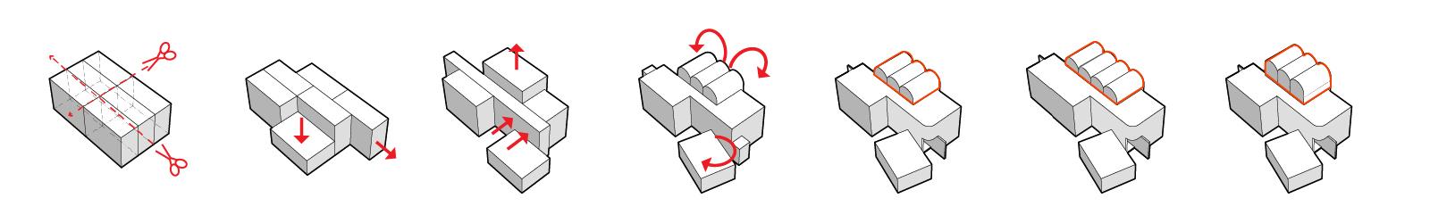 The design concept for this project revolves around optimization, particularly due to the site’s sharp and angular layout. In traditional Chinese design philosophy, there is a preference for living in straight and direct interior spaces rather than angular or irregular layouts. To address this, the initial step in the massing strategy involves cutting the angles and strategically arranging 12 modular units within the space. This approach ensures optimal placement for plumbing and HVAC systems. The remaining areas are designed to be flexible, transforming into commun al spaces that cater to the needs of the tenants.