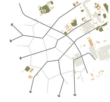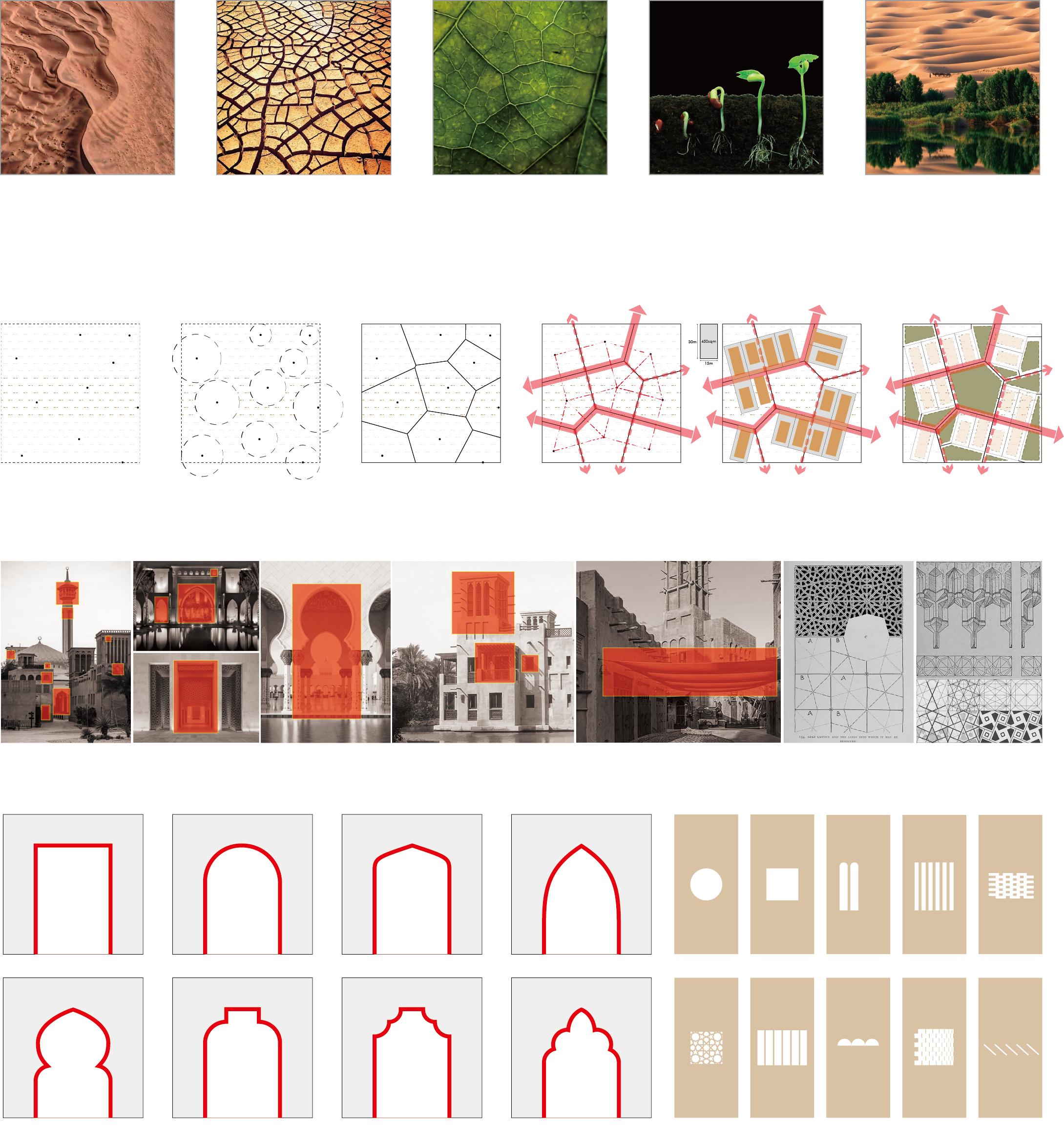 Reviewing the past development and future plans of the UAE is akin to tracing the resilient trajectory of a city’s growth. However, this vibrant land is plagued by extreme weather and natural challenges. The cracks in the desert landscape and the veins of plant leaves are derived from the natural branching patterns, analogous to the road networks in urban development serving as the arteries for nutrient distribution in communities. These veins are intricately connected to internally filled spaces, forming an inseparable relationship in the city’s development.