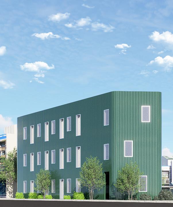 The entire building is constructed using concrete, a common and traditional building material in Taiwan. The exterior is clad with green corrugated steel, a choice that not only reduces labor costs but also aligns with budget considerations. This design creates a clean and visually soft landmark, particularly for the half of the building that faces the wide traffic road, offering a striking yet harmonious presence in the urban landscape.