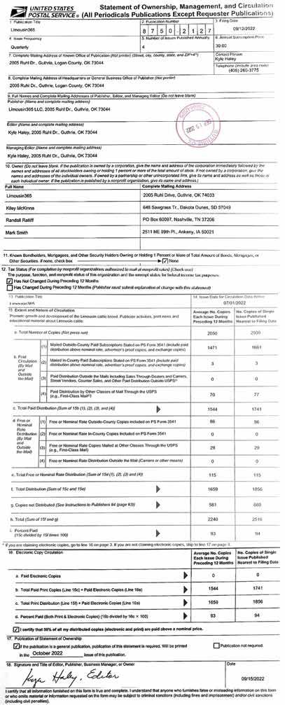 .................................................................................................. 50 DEPARTMENTS Around The Industry ..................................................................................................................... 6 President’s Message 10 Executive Summary ...................................................................................................................... 12 Member & Industry News 16 Riding Shotgun 22 Do Better. Be Better. .................................................................................................................... 26 Performance Line 60 Junior Scene ................................................................................................................................. 64 Sales & Events 68 Advertisers Index .......................................................................................................................... 71 28 34 46 Limousin365 • 2005 Ruhl Drive, Guthrie, OK 73044 405/260-3775 • Fax 405/260-3766 • www.Limousin365.com Limousin365 (ISSN-2771-9642, USPS 24730) is a quarterly magazine published in the interest of the Limousin breed of cattle. Limousin365 seeks to promote the growth and development of Limousin, to publicize the activities of Limousin breeders, and to print news and educational material of use to them. Limousin365 is published quarterly by Limousin365, 2005 Ruhl Drive, Guthrie, OK 73044. Periodical Postage Paid at Guthrie, OK, and at additional mailing offices. Subscription rates for one, two and three years are $30, $40 and $52. POSTMASTER: Send address changes to Limousin365, 2005 Ruhl Drive, Guthrie, OK 73044. OFFICIAL PUBLICATION OF THE NORTH AMERICAN LIMOUSIN FOUNDATION • OCTOBER 2022 4 • OCTOBER 2022