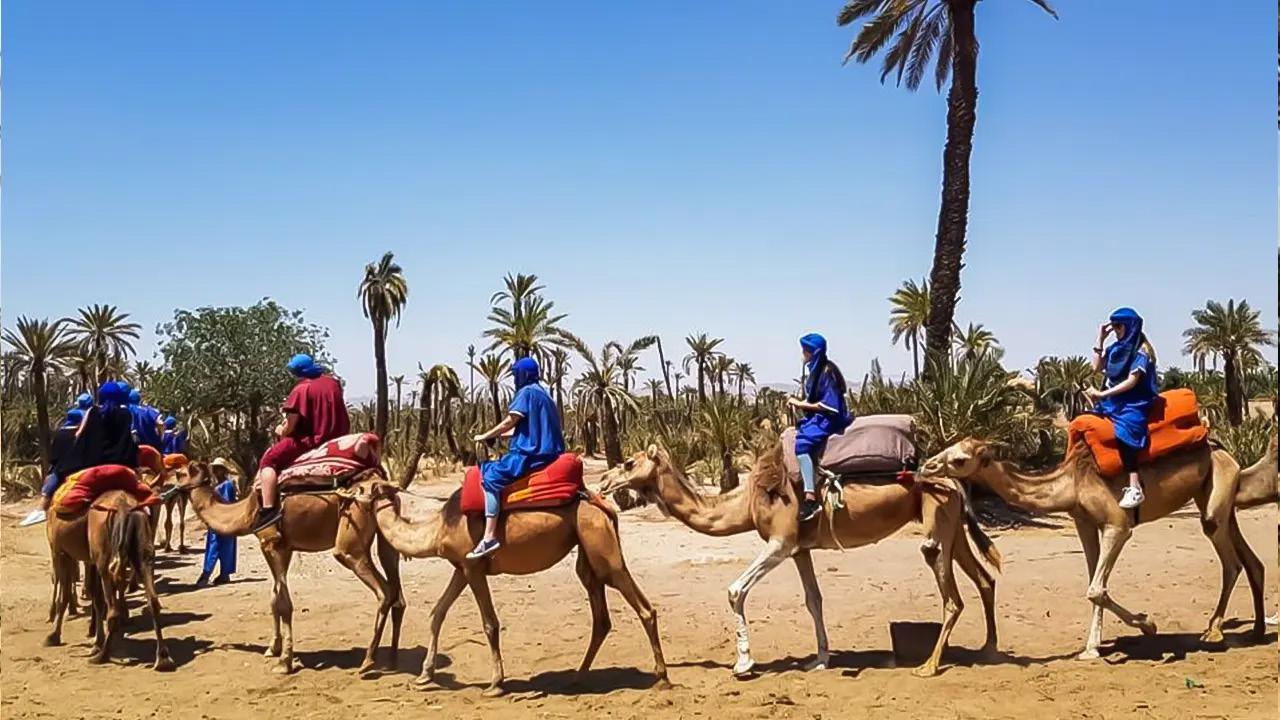 IMMERSE YOURSELF IN MOROCCAN CULTURE WITH A TRADITIONAL CAMEL RIDE THROUGH THE SERENE PALM GROVES ON THE OUTSKIRTS OF MARRAKECH. THIS ICONIC EXPERIENCE OFFERS A PEACEFUL JOURNEY ACROSS THE DESERT LANDSCAPE, WHERE YOU CAN ENJOY THE TRANQUILITY OF THE SURROUNDINGS WHILE RIDING THESE GENTLE CREATURES. YOU’LL BE DRESSED IN TRADITIONAL ATTIRE, ADDING AN AUTHENTIC TOUCH TO THE ADVENTURE. ALONG THE WAY, STOP FOR A REFRESHING BREAK WITH MINT TEA AT A LOCAL BERBER HOUSE, WHERE YOU CAN LEARN ABOUT THE CUSTOMS AND TRADITIONS OF THE REGION. IDEAL FOR FAMILIES, COUPLES, OR SOLO TRAVELERS, A CAMEL RIDE PROVIDES A UNIQUE AND RELAXING WAY TO EXPLORE THE MOROCCAN DESERT.