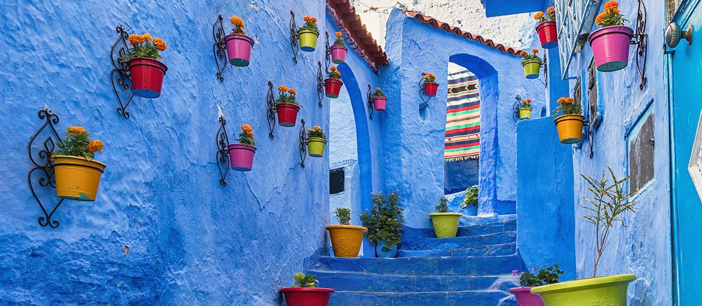 CONTINUE TO CHEFCHAOUEN, THE "BLUE PEARL," WHERE YOU’LL WANDER ITS PICTURESQUE BLUE STREETS AND ENJOY VIEWS OF THE RIF MOUNTAINS. THIS TOWN OFFERS SERENITY FOR BOTH PHOTOGRAPHERS AND NATURE LOVERS.