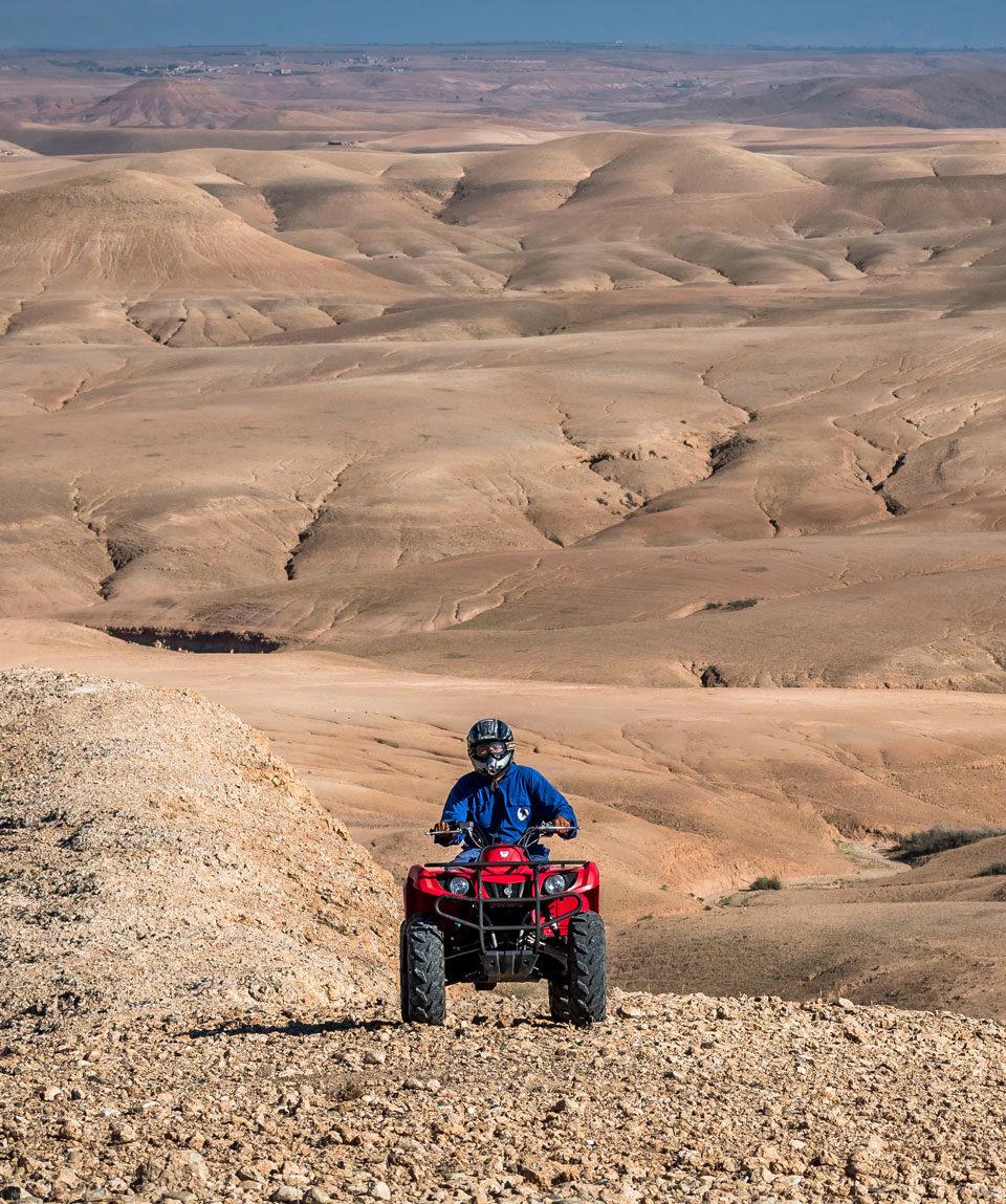 EXPERIENCE THE THRILL OF OFF-ROAD ADVENTURE WITH A QUAD OR BUGGY RIDE THROUGH THE RUGGED LANDSCAPES SURROUNDING MARRAKECH. THIS ACTIVITY OFFERS AN EXHILARATING WAY TO EXPLORE THE DESERT AND NEARBY VILLAGES, COMBINING SPEED, ADRENALINE, AND STUNNING SCENERY. YOU’LL DRIVE THROUGH ROCKY TERRAIN, SANDY TRAILS, AND EVEN CROSS DRY RIVERBEDS, ALL WHILE ENJOYING PANORAMIC VIEWS OF THE ATLAS MOUNTAINS IN THE DISTANCE. PERFECT FOR BOTH BEGINNERS AND EXPERIENCED DRIVERS, OUR GUIDES WILL ENSURE A SAFE AND EXCITING EXPERIENCE. ALONG THE WAY, STOP AT A TRADITIONAL BERBER VILLAGE FOR MINT TEA AND LEARN ABOUT LOCAL LIFE. THIS ADVENTURE IS IDEAL FOR ADRENALINE SEEKERS AND NATURE LOVERS ALIKE.
