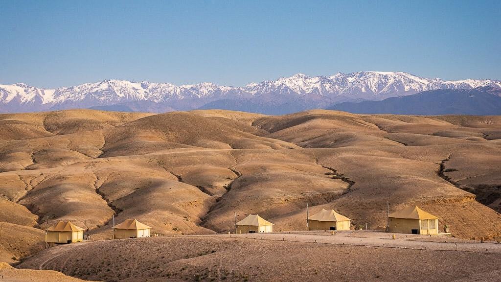 DISCOVER THE RAW BEAUTY OF THE AGAFAY DESERT, A ROCKY, LUNAR-LIKE LANDSCAPE JUST OUTSIDE MARRAKECH. THIS DAY TRIP OFFERS A UNIQUE DESERT EXPERIENCE WITHOUT THE LONG DRIVE TO THE SAHARA. EXPLORE THE VAST EXPANSE OF DUNES AND ROCKY PLAINS ON A CAMEL RIDE OR OPT FOR A THRILLING 4X4 ADVENTURE. AS THE DAY UNFOLDS, YOU’LL VISIT A TRADITIONAL BERBER CAMP WHERE YOU CAN RELAX WITH MINT TEA AND ENJOY THE CALM ATMOSPHERE OF THE DESERT. THE AGAFAY DESERT IS THE PERFECT ESCAPE FOR THOSE SEEKING TRANQUILITY AND STUNNING PANORAMIC VIEWS. CAP OFF YOUR DAY WITH A MAGICAL SUNSET, PAINTING THE SKY IN HUES OF ORANGE AND PINK.