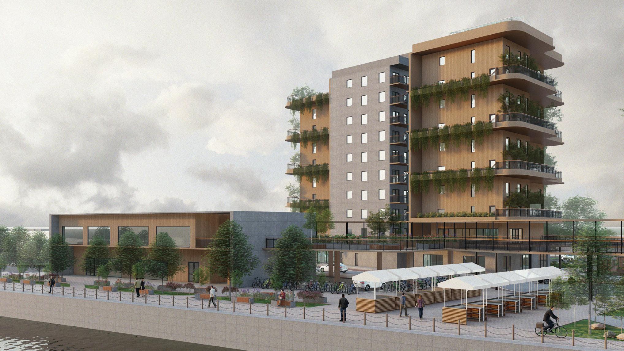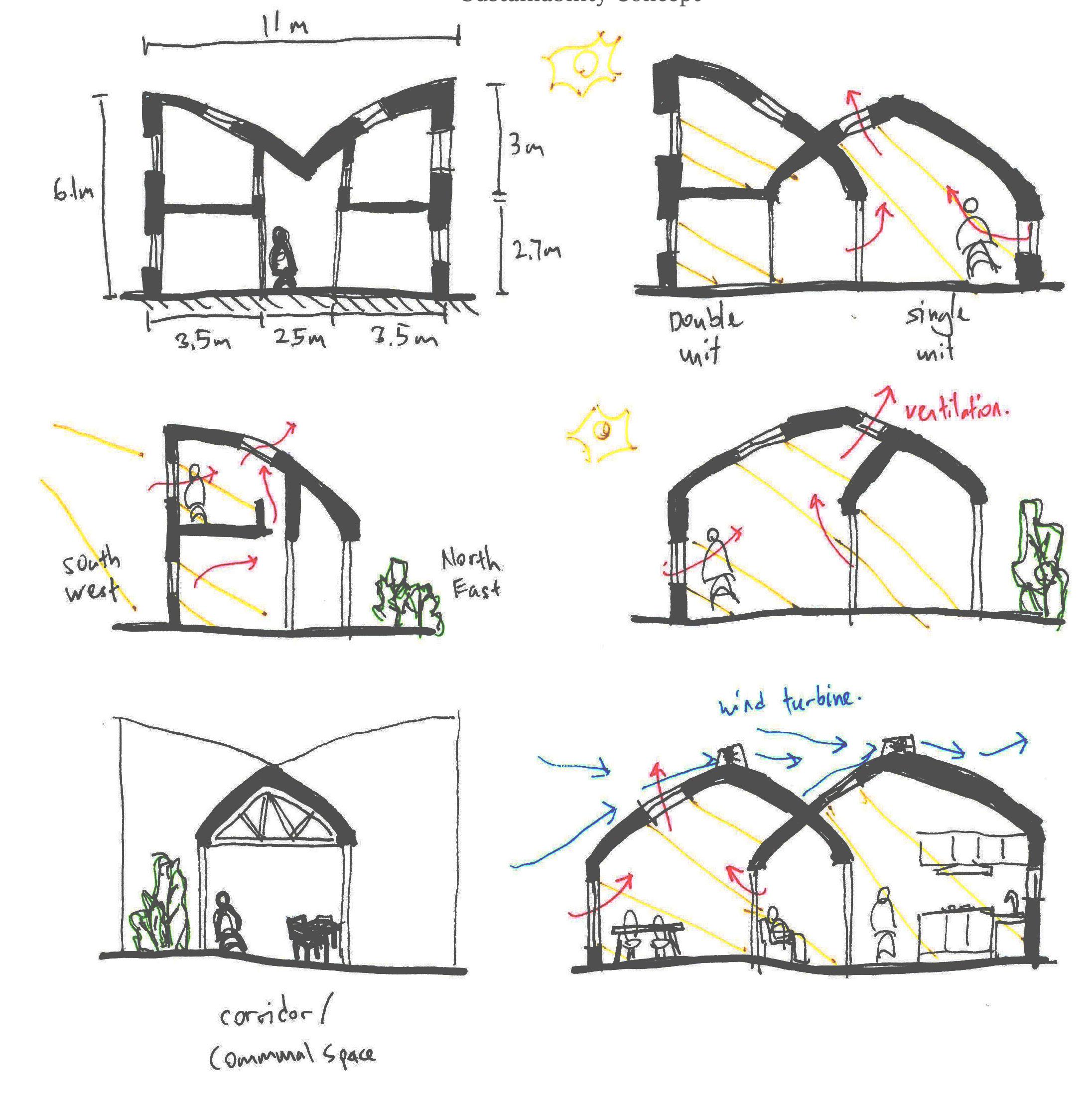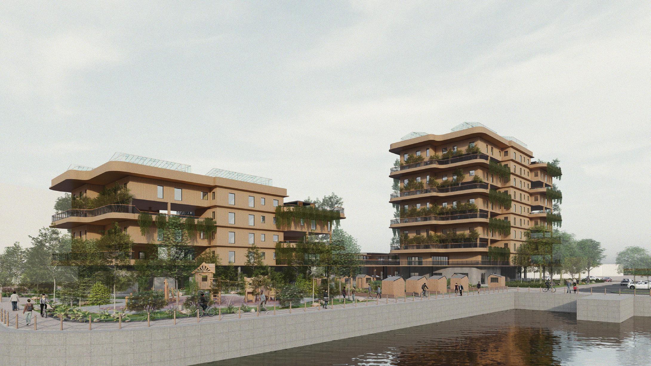With the rise of overheating risks in dwellings and the need for sustainable infrastructure as a result of increasing population in urban area, understand the constraints unique to the site and analyse the microclimate & environmental factors in designing a high-density residential scheme in Royal Albert Island, London. Whilst using simulation software and building physics calculation to aid in making design decisions, the proposal includes the explorations in sustainable timber as main construction material and meet the Passivhaus requirement (German standard) in effort to minimise environmental impact by demonstrating the use of sustainable methodologies & Passivhaus Planning Package (PHPP).