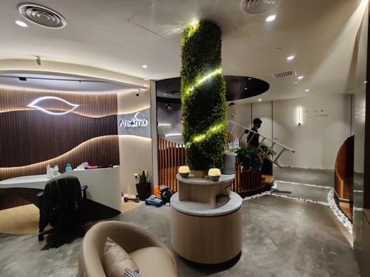 25mm x 25mm wooden plank at all sides wrapped with flashing with LED & plant decoration 38mm x 38mm ms. hollow section support to ceiling