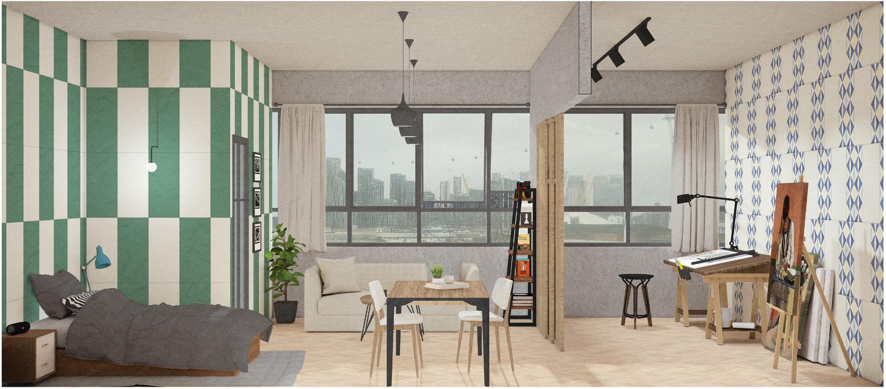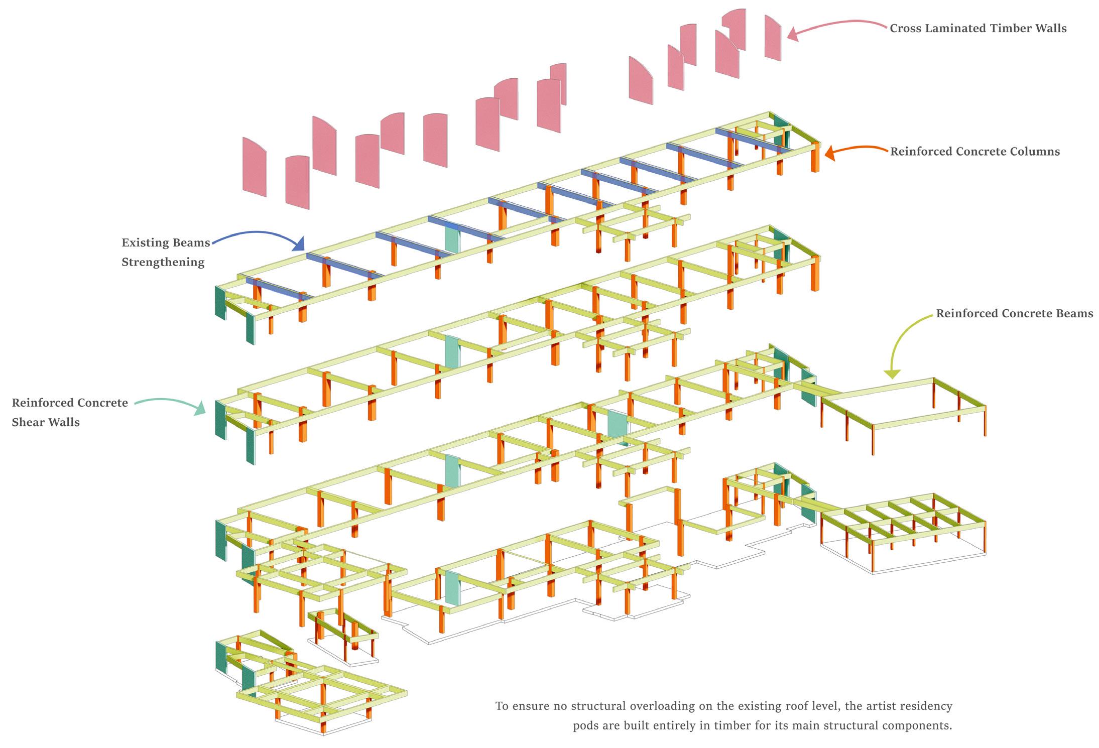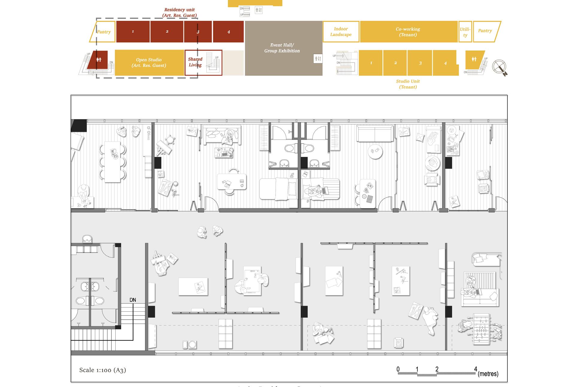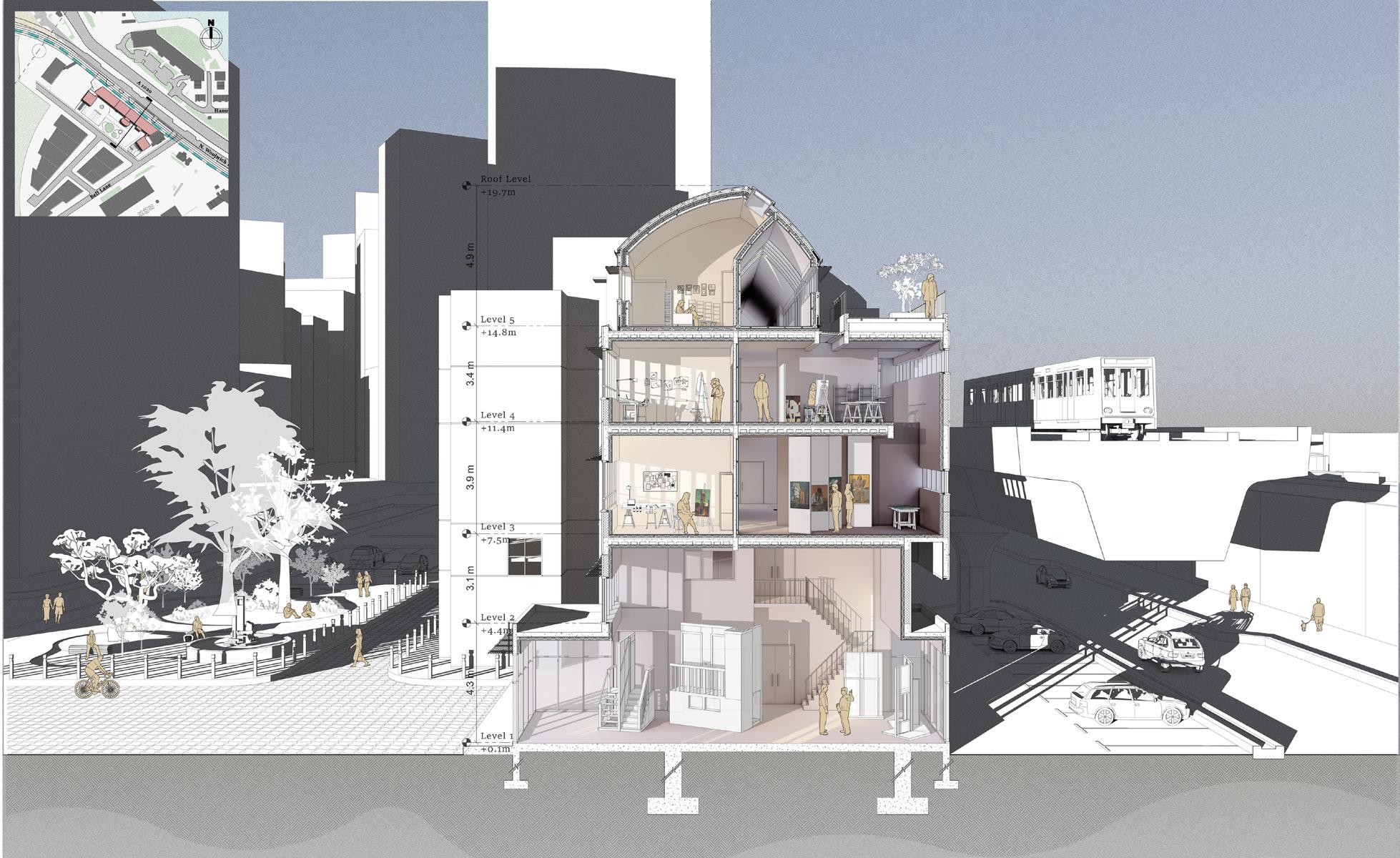 Artist residence is the proposed programme which the intention derived from the current building users’ artistic background. Considering the brutalist history of Silver Building, the design concept revolves around bringing the building’s character into the space quality to form an inspiring backdrop for the artist society and Silvertown community.