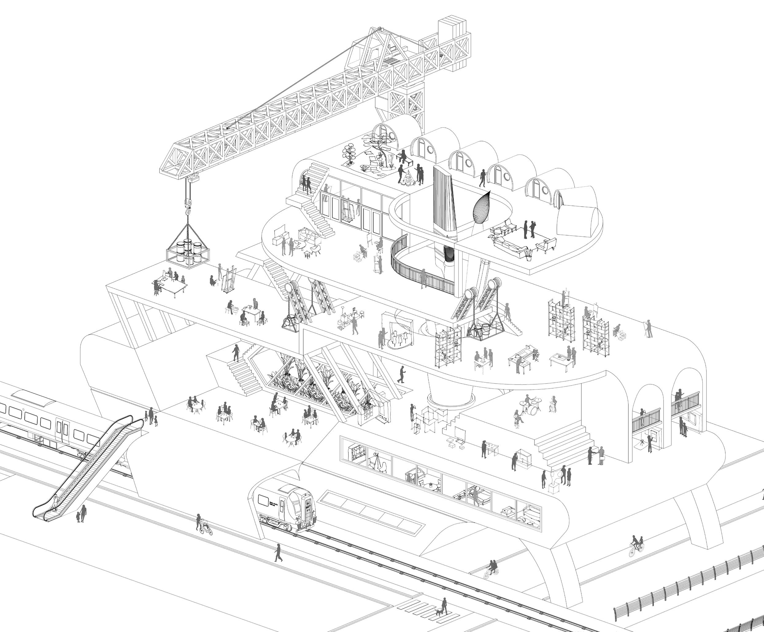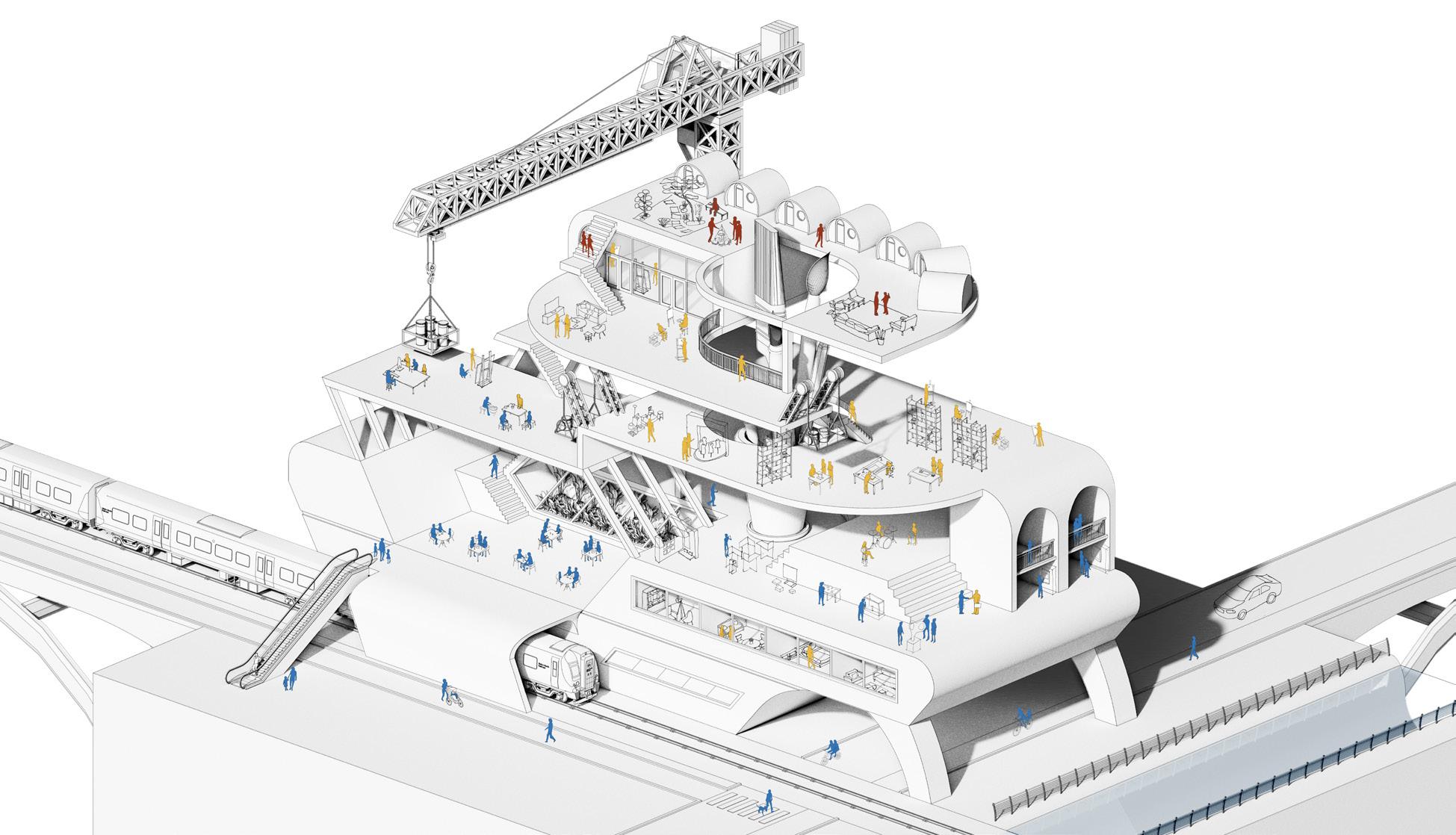 A retrofitting project located in Silver Building, Silvertown London. Explore the potential of sustainability, materiality and technology within the challenges in improving an existing structure. The aim of the proposal lies between reducing embodied carbon whilst creating sptially rich architecural solution considering the rising demand of reusing construction materials in bult environment. The project demonstrates that retrofitting not only create efficient building but joyful spaces, and respond sensitively to place, community and existing ecologies. The fundamentals of passive design principles are the project main drive and at the same time strike the balance of relationship between architecture, energy and wellbeing.