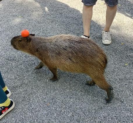 工作人員:園區內可以拍照,但是請不要使用閃光燈,否則會嚇到動 物們。